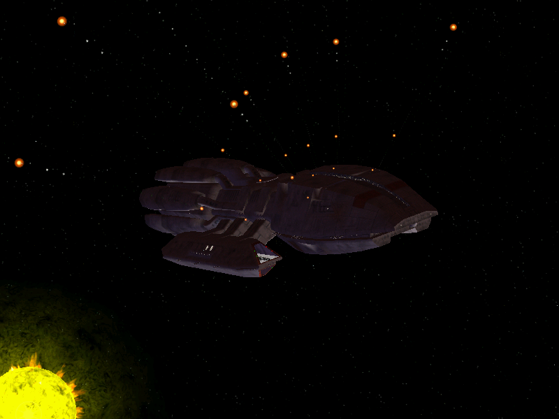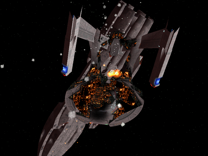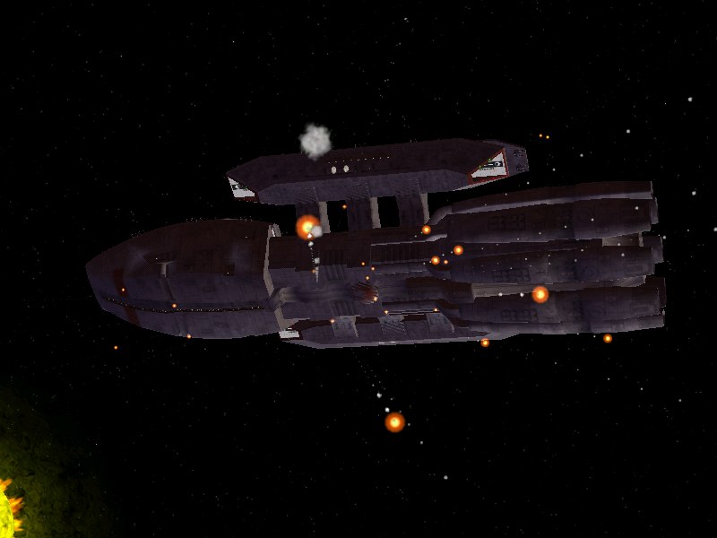 Hier sind nochmal ein paar BIlder von der Pegasus. Diesmal hab ich ne Akiraklasse zerlegt. ICh hoffe, dass man das Feuer jetzt weng besser erkennen kann. Ich habs mal als PNG gespeichert...