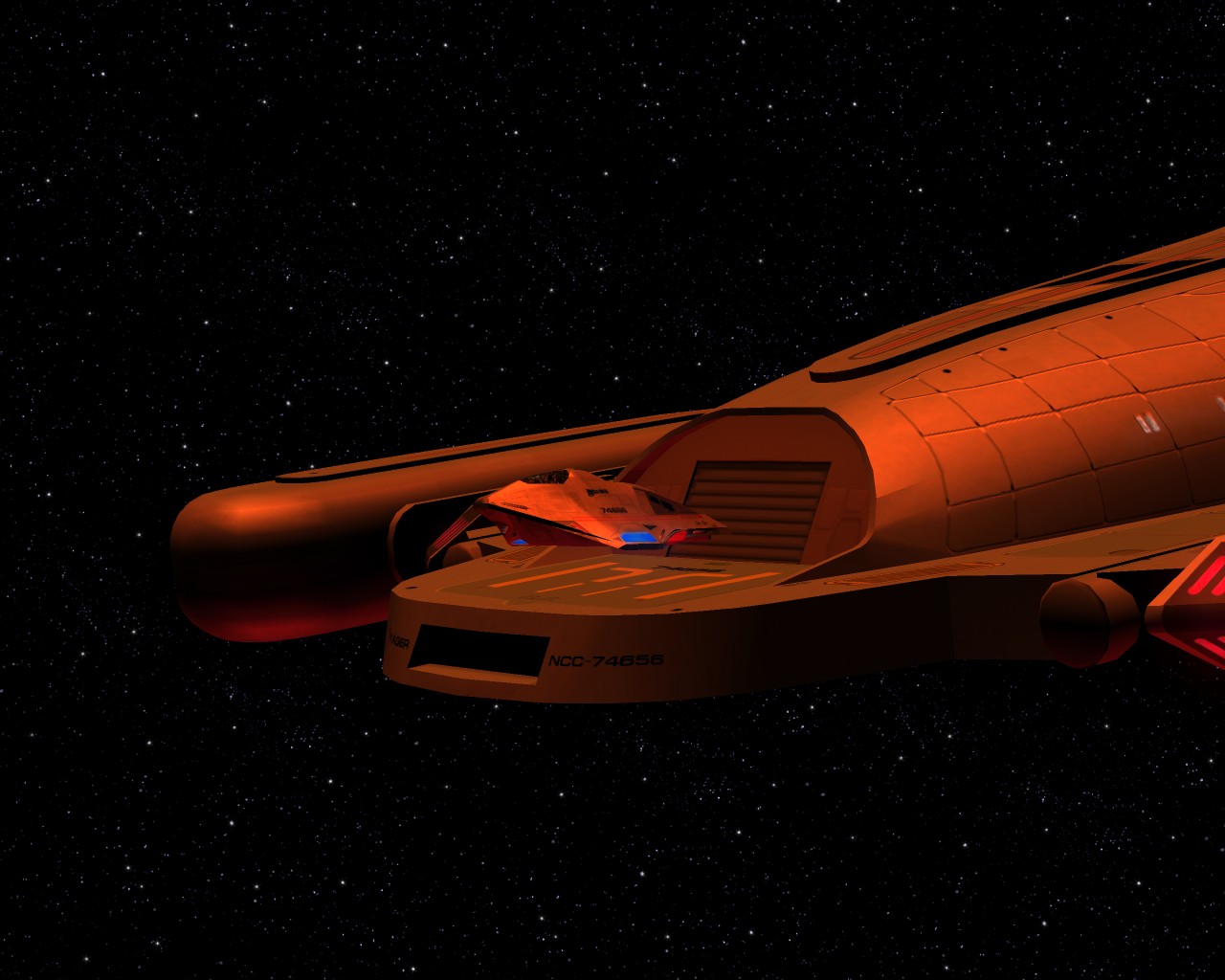 was für ein detailreiches Schiff...echt irre. Aber der Flyer stößt doch mit seinen Flügeln gegen die Hangarkanten...