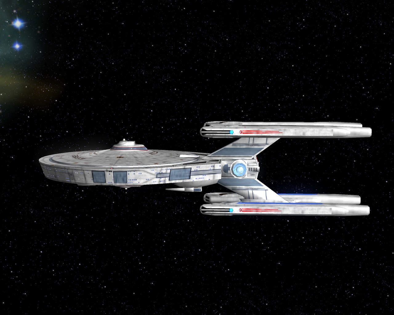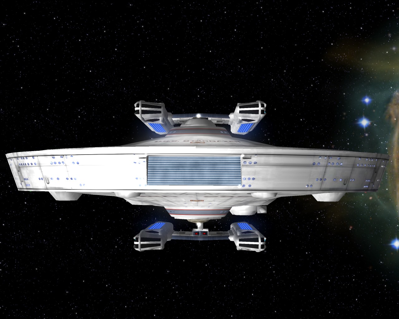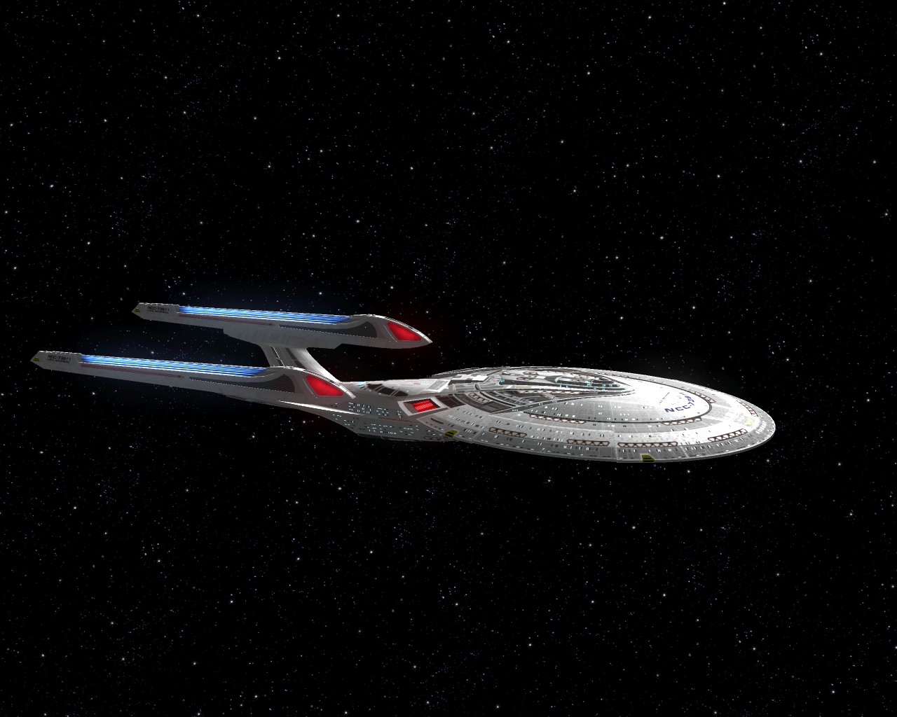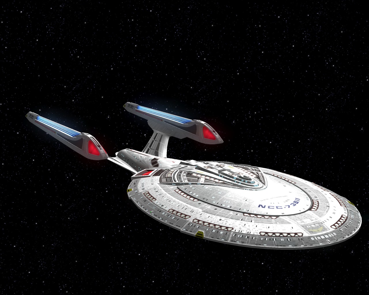 Bevor ich die Bilder mit der Prometheus gemacht hatte, testete ich ein neues Schiff "die NCC-1701-A Ghost". Sprich ein Geisterschiff, vergleichbar mit dem Segelschiff der Piraten aus Pirates of the Caribbean. Das hat auch ziemlich heftige Waffen. Ich war nämlich mit einem Schiff der Saber Klasse unterwegs und mit den ersten 2 Phaserschüssen hatte das Geisterschiff mein vorderes Schutzschild vollkommen ausgeschaltet. Die nachträglichen Photonentorpedos haben mich dann auf der Stelle zerstört.