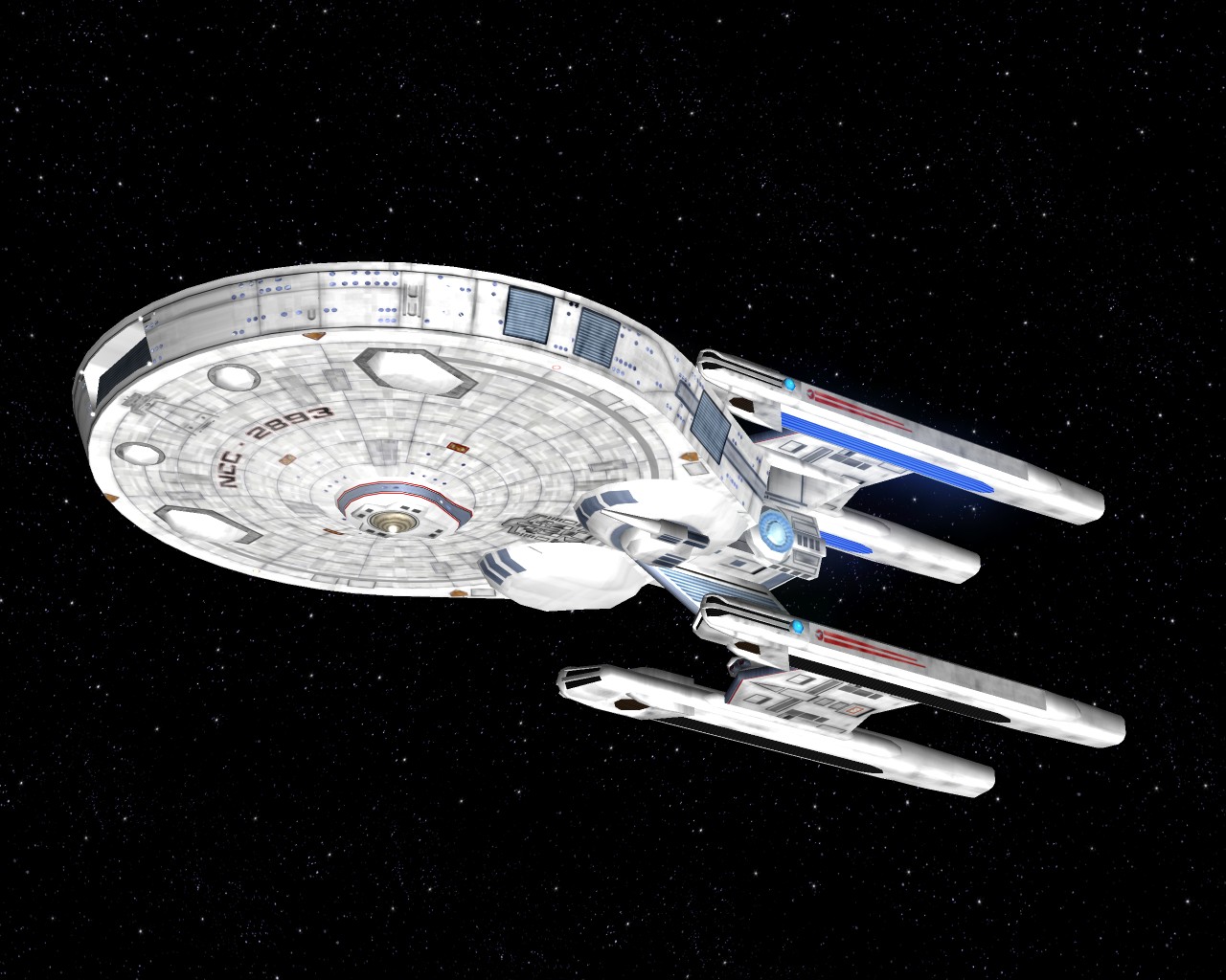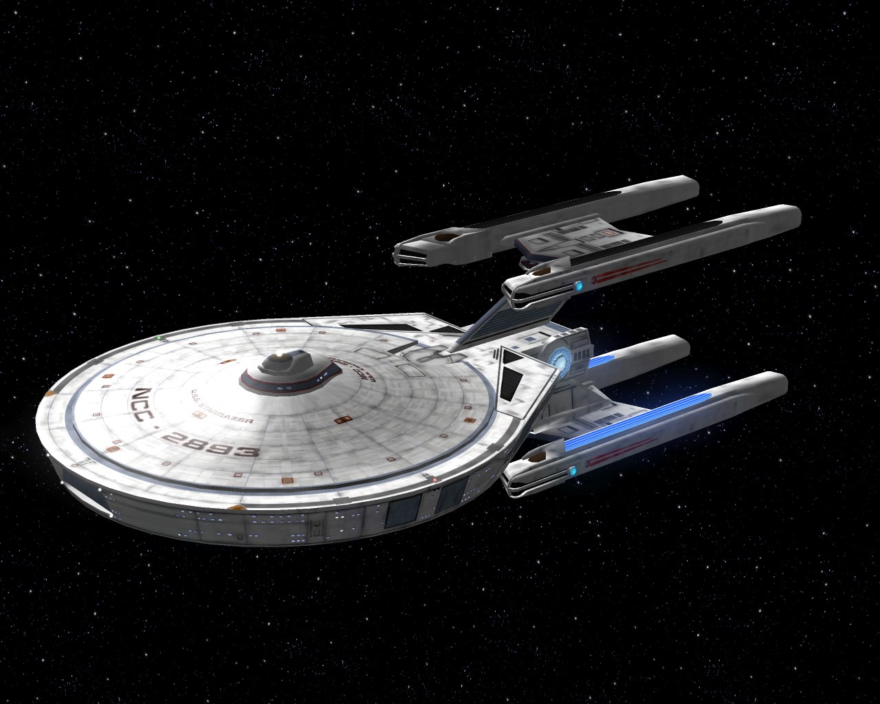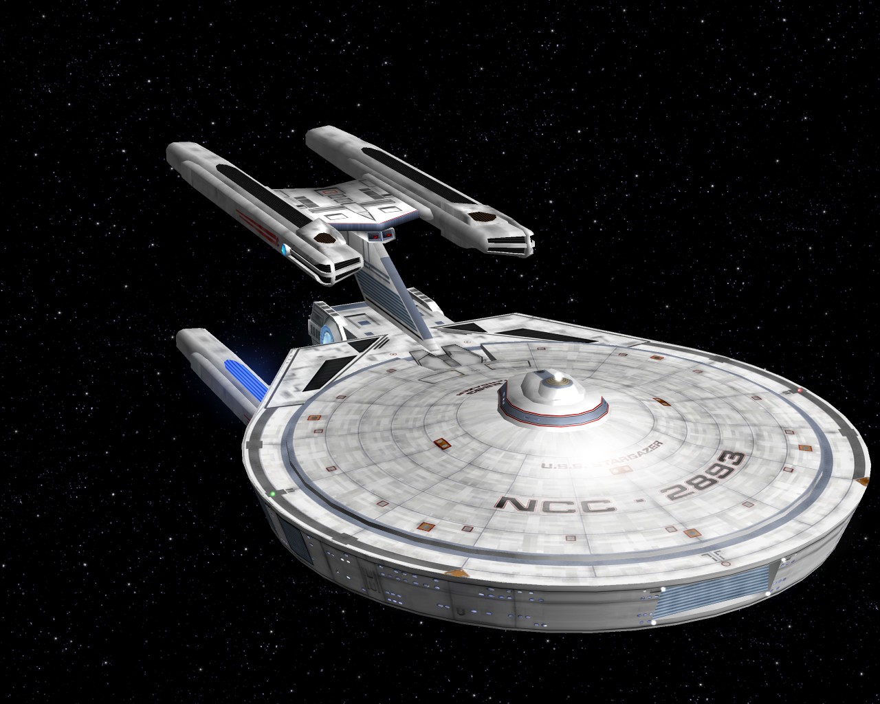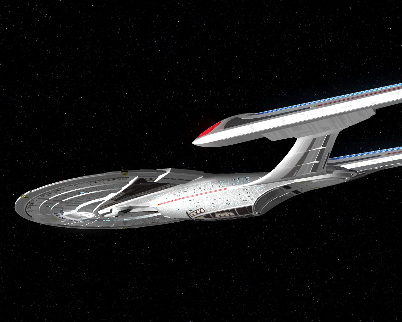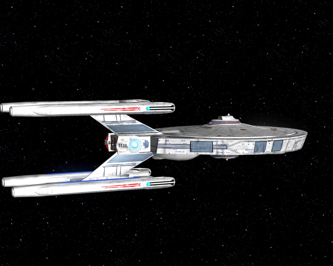 Bevor ich die Bilder mit der Prometheus gemacht hatte, testete ich ein neues Schiff "die NCC-1701-A Ghost". Sprich ein Geisterschiff, vergleichbar mit dem Segelschiff der Piraten aus Pirates of the Caribbean. Das hat auch ziemlich heftige Waffen. Ich war nämlich mit einem Schiff der Saber Klasse unterwegs und mit den ersten 2 Phaserschüssen hatte das Geisterschiff mein vorderes Schutzschild vollkommen ausgeschaltet. Die nachträglichen Photonentorpedos haben mich dann auf der Stelle zerstört.
