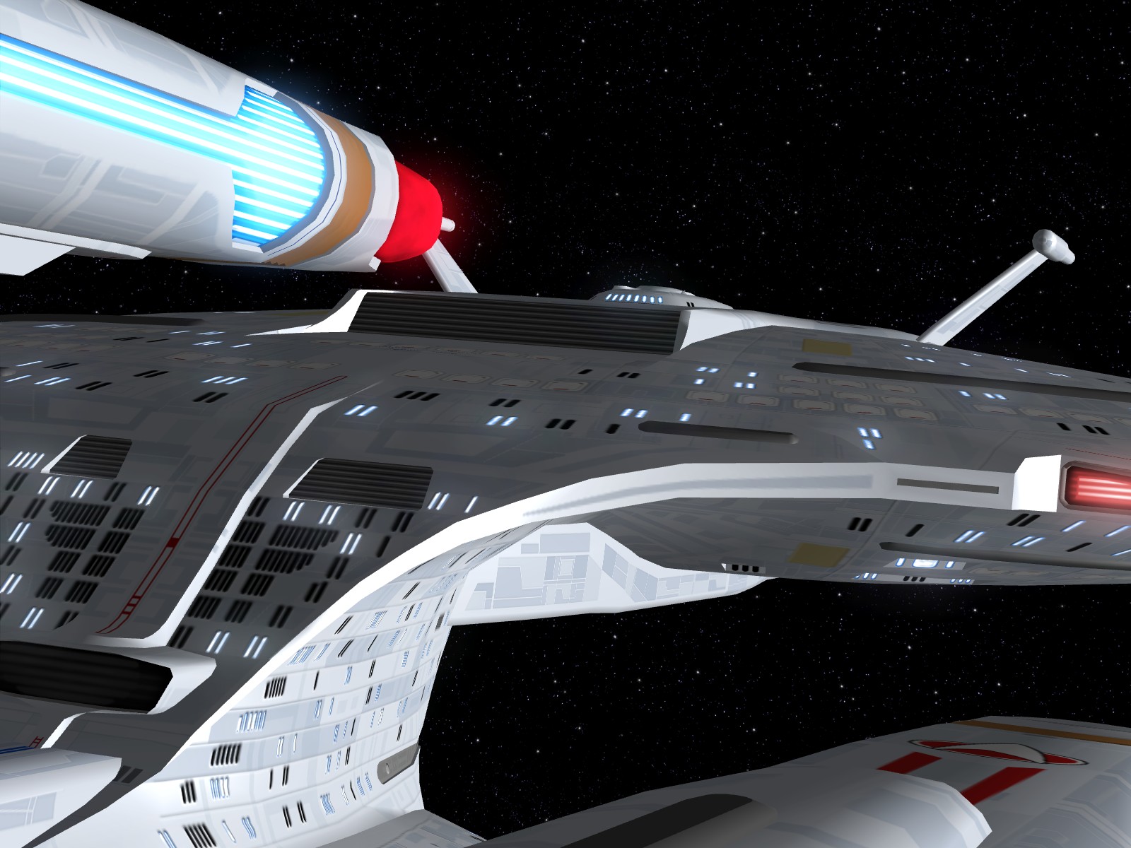 Ich brauche noch extreme Nahaufnahmen von der Seite, und von den Shuttlerampen, Zaphod hat ein extrem detailiertes Modell, vielleicht kann er da weiterhelfen...also die Kamera muss sehr viel näher an die Shuttlerampe heran als auf den Bildern und am Besten direkt von hinten, sodass man die Tore von vorne sieht und dahinter die Brücke und die "Pulsphaserfühler"...