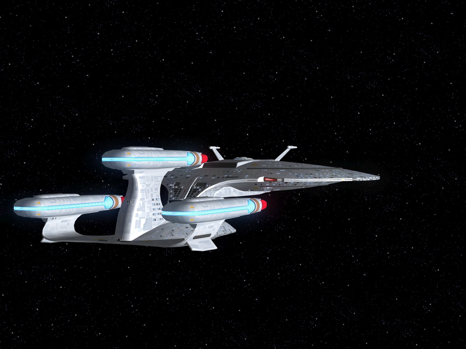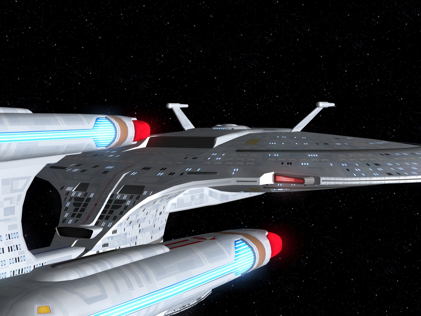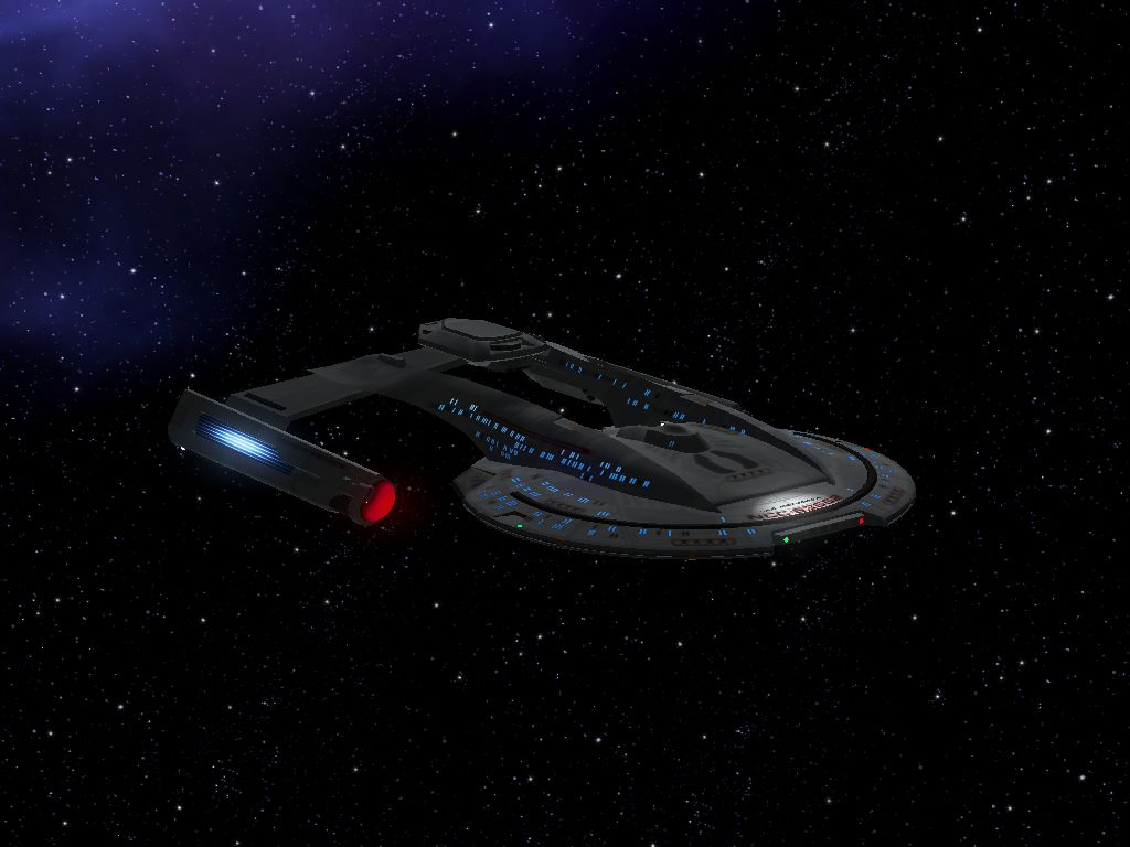 Ja stimmt das sieht etwas komisch aus, mit diesen eckigen Klötzen. Bei dem Bild bin ich übrigens mit dem Primärrumpf der Galaxy Klasse unter den Schilden des SSD hindurchgeflogen und konnte ihn deswegen bombadieren. Die Schilde selbst sind undurchdringlich für ein einzelnes Föderationsschiff.