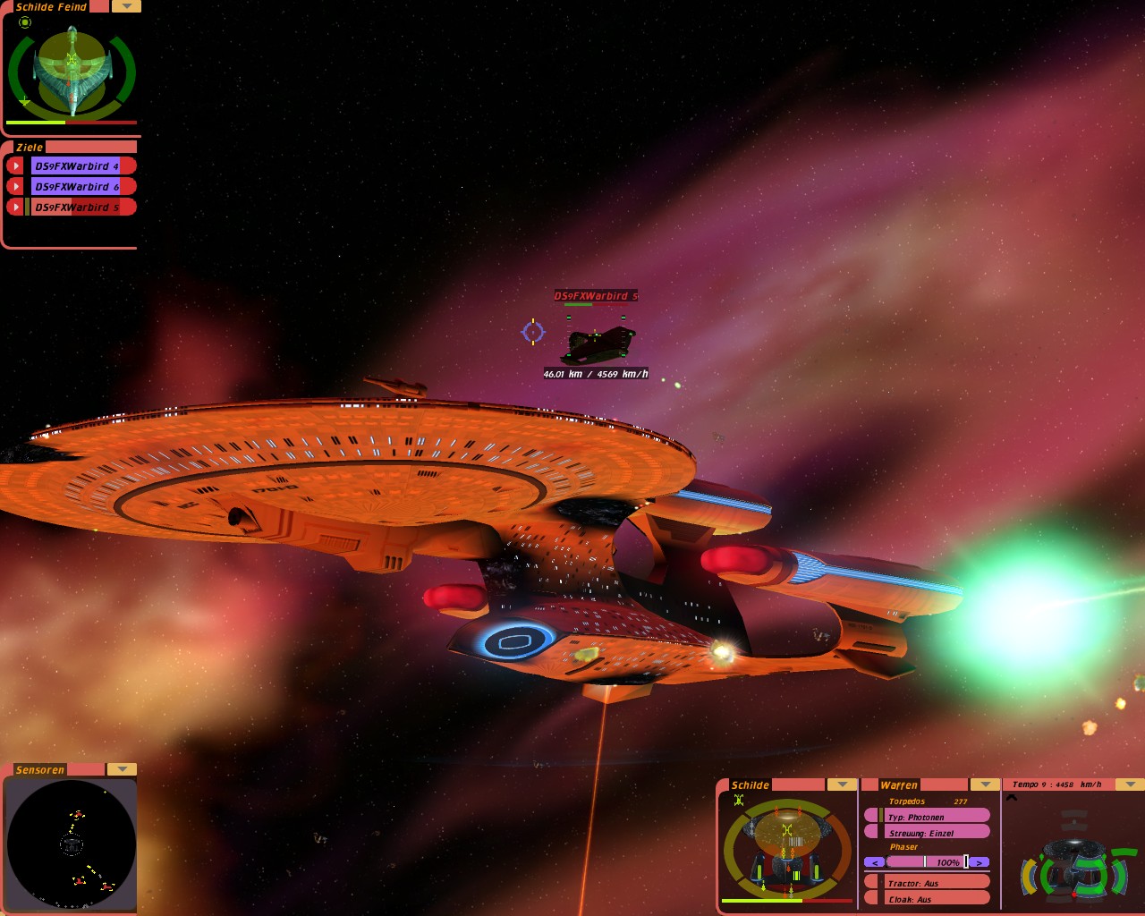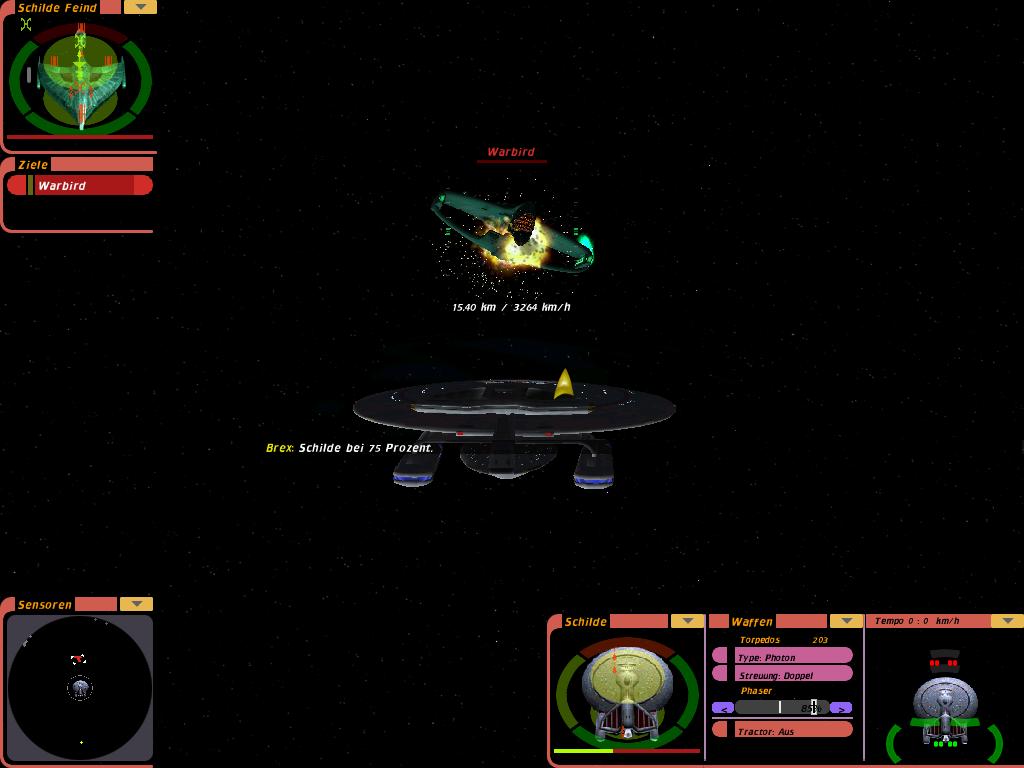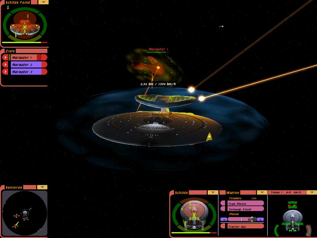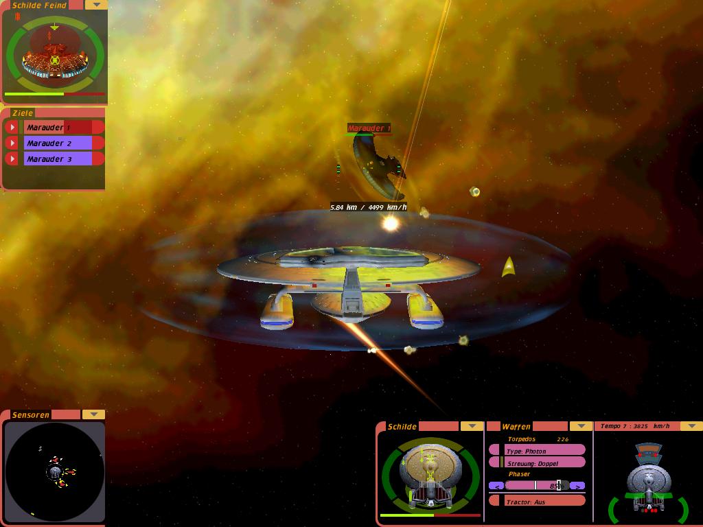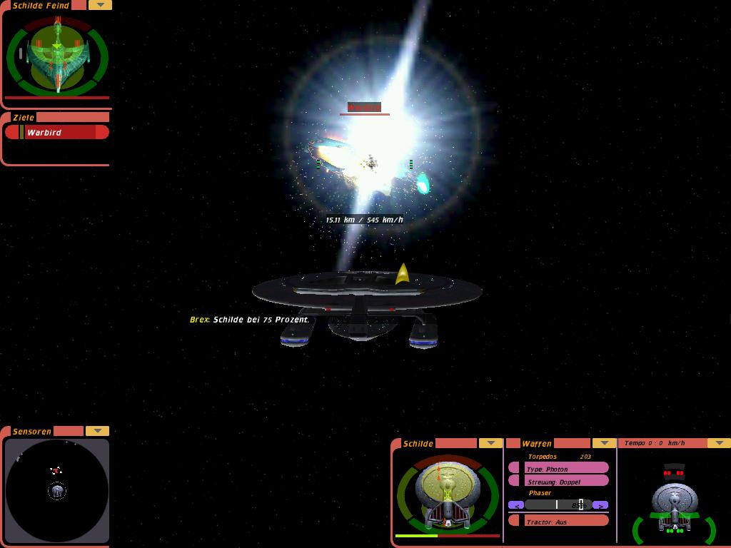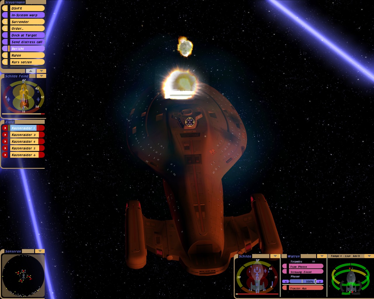 Bei den ersten drei Bildern hat die Enterprise ganz schön was abbekommen, bzw. ich war Waffentechnisch unterlegen gegen die Romulaner und musste mit Warp fliehen.