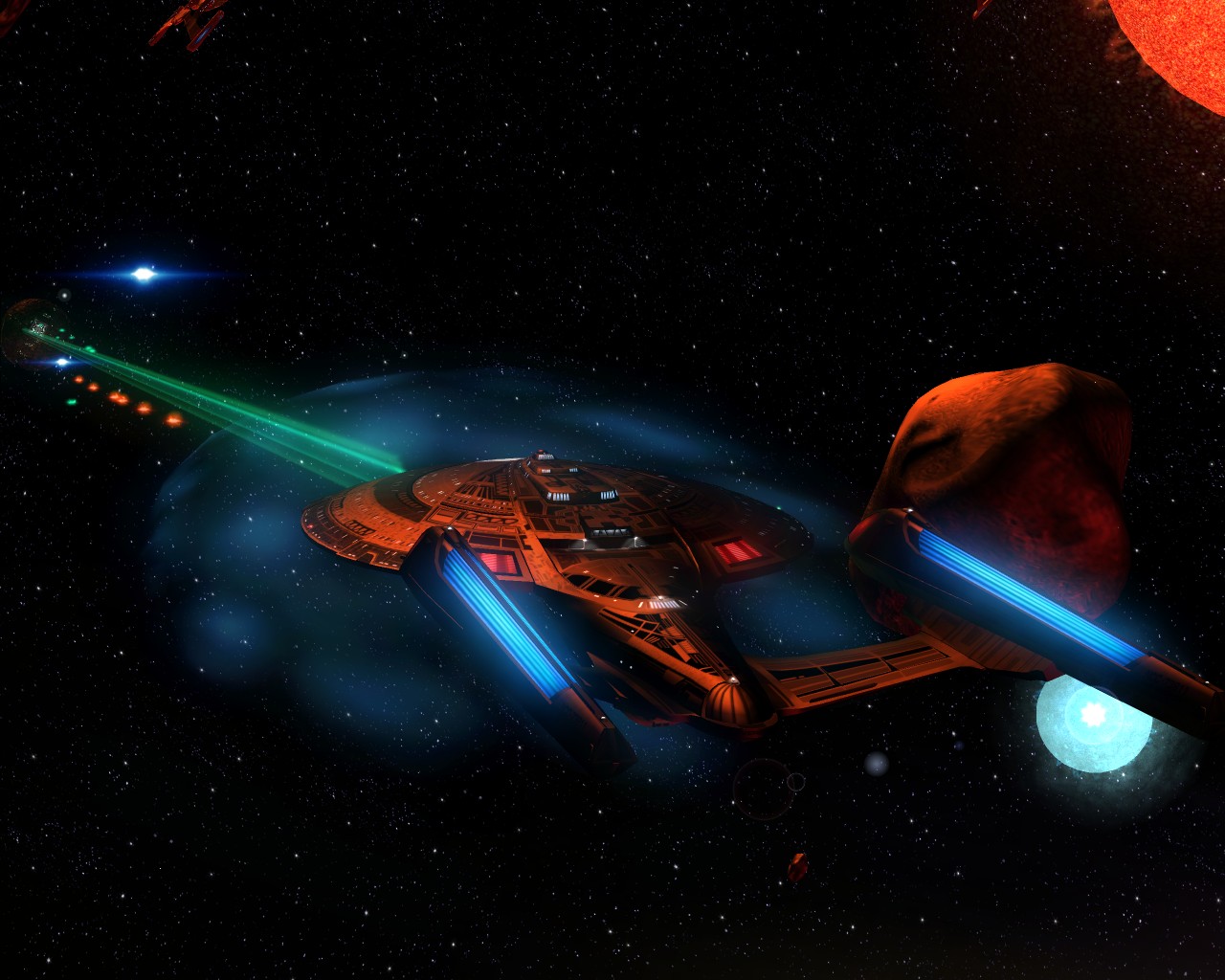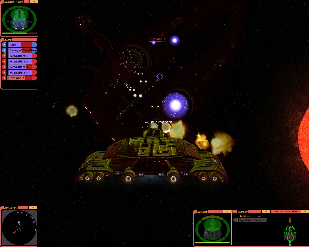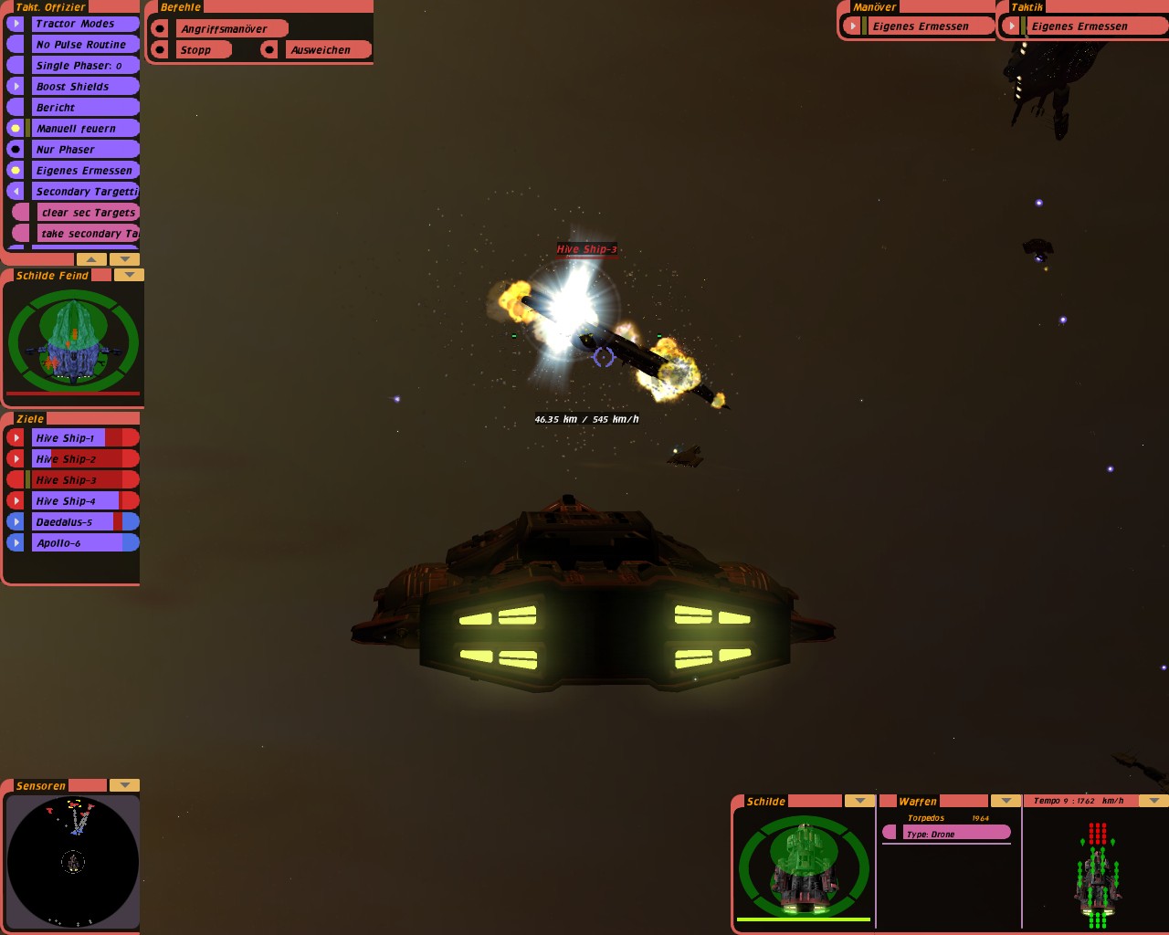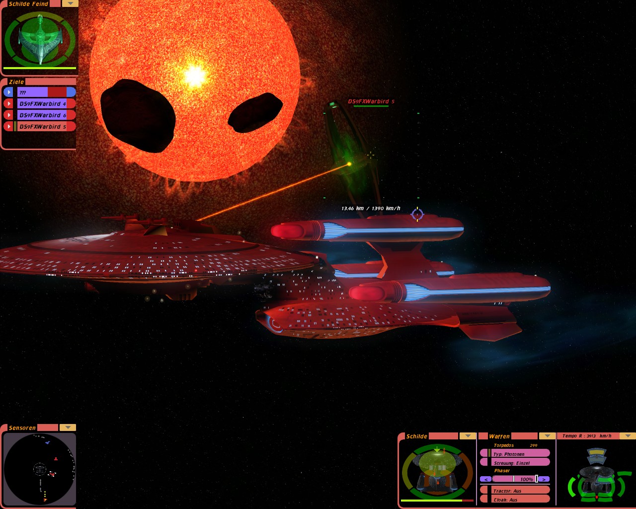 Bei den ersten drei Bildern hat die Enterprise ganz schön was abbekommen, bzw. ich war Waffentechnisch unterlegen gegen die Romulaner und musste mit Warp fliehen.