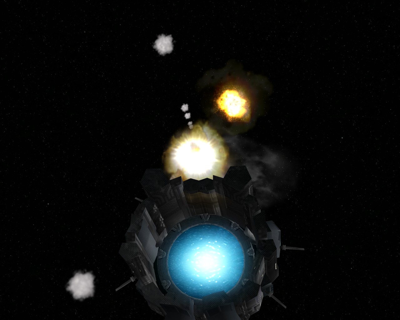 Bei Bild 11-13 habe ich versucht den Satelliten der Asuraner (Die Waffe, die gegen Atlantis in der dritten Staffel eingesetzt wurde.) zu vernichten, unterstützt mit der Feuerkraft aller zur Verfügung stehender Jäger. Leider war alles vergebens, da die Waffe mich anvisierte und der Strahl innerhalb von Sekunden meinen vorderen Schild durchbrach.