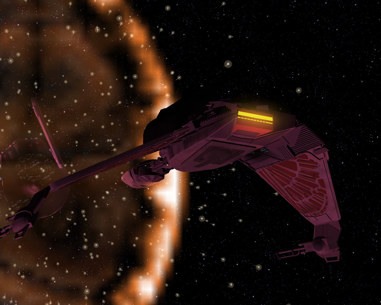 Bei Bild drei bis fünf hab ich einen neuen Bird of Prey ausprobiert. Das Föderationsschiff lag nach einem heftigen Kampf wehrlos und steuerlos im Raum und zum Schluss gab ich ihm noch den Gnadenschuss. So wie Klingonen halt sind.