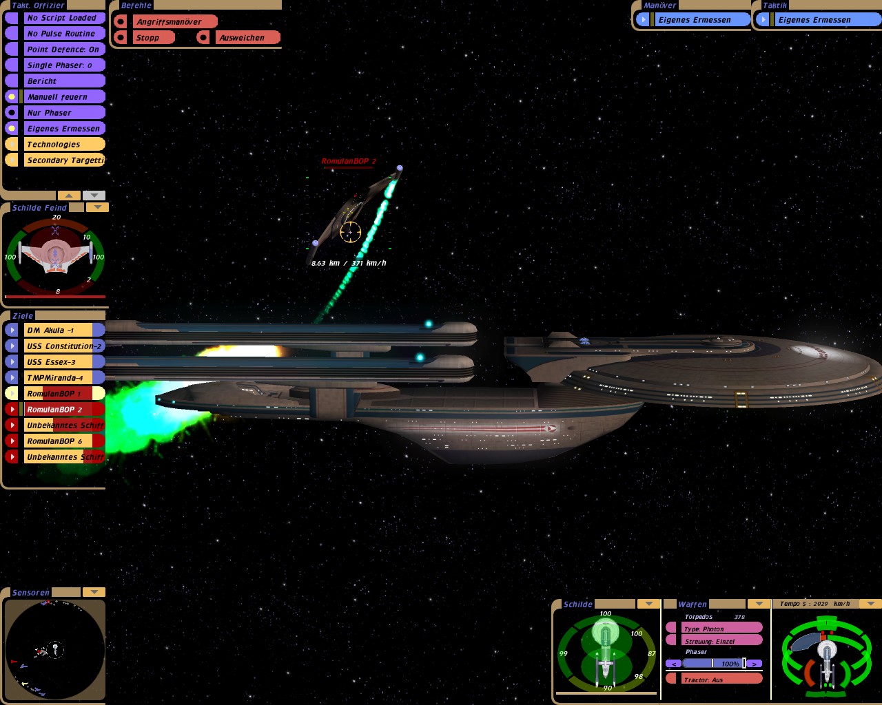 Hab eben auch noch ein paar neue Schiffe und eine neue Erde getestet. Darunter ist auch der alte BOP Romulan Warbird, gegen den ich ein Gefecht gemacht habe. Die neuen Texturen für die Erde sehen leider nicht so gut aus wie ich es mir vorgestellt habe.