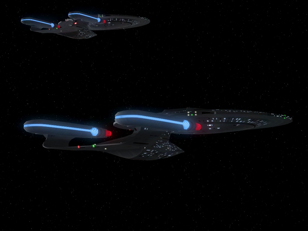 Hier ist sie onscreen zu sehen, rechts...sieht aus wie eine Excelsior nur mit verschobenen Rumpf und Gondeln: