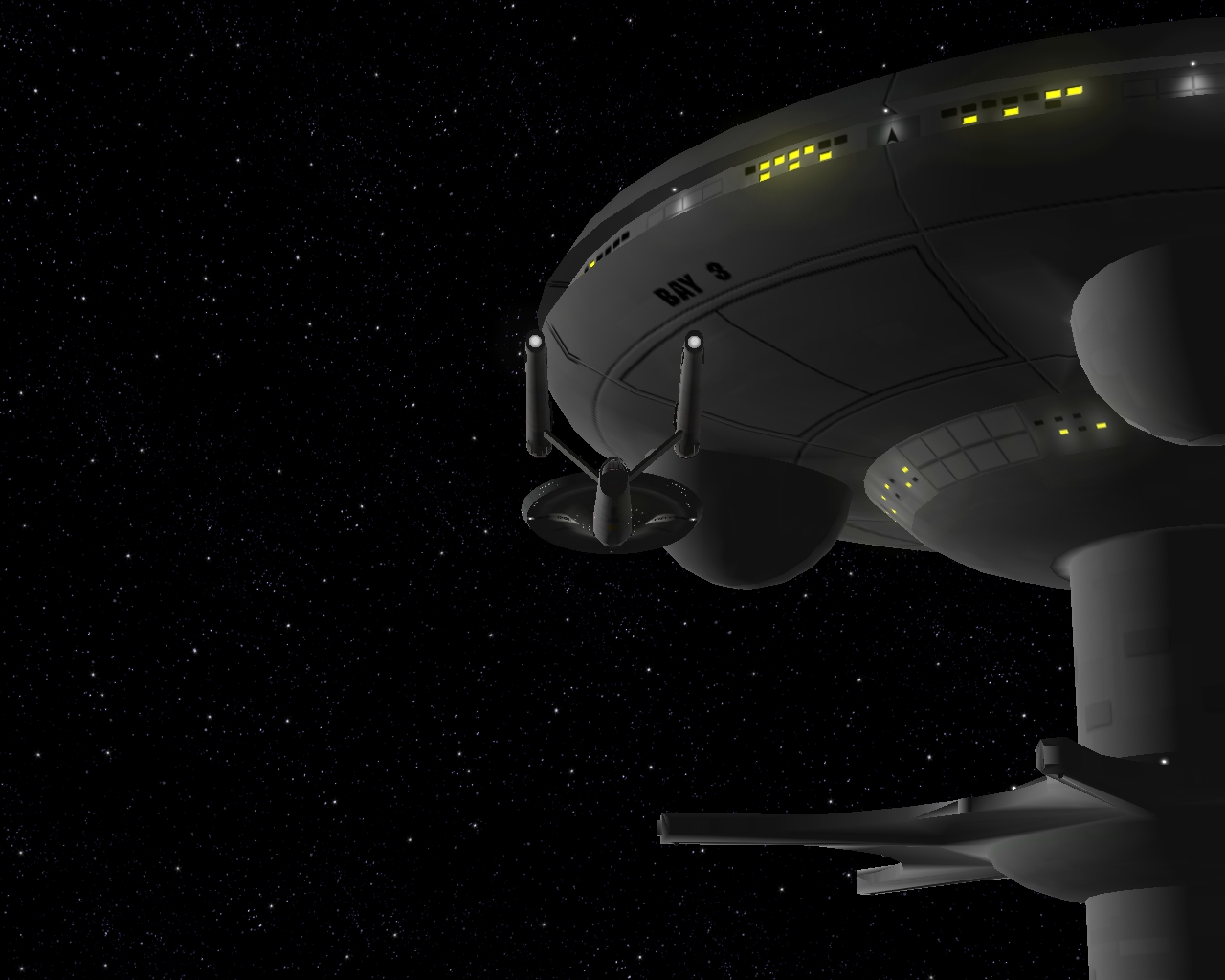 Das die Enterprise an der Starbase angedockt hat war nur ein optischer Trick. Aus einem anderen Blickwinkel konnte man erkennen das zwischen Sternenbasis und Schiff locker noch ne Connie gepasst hätte.
