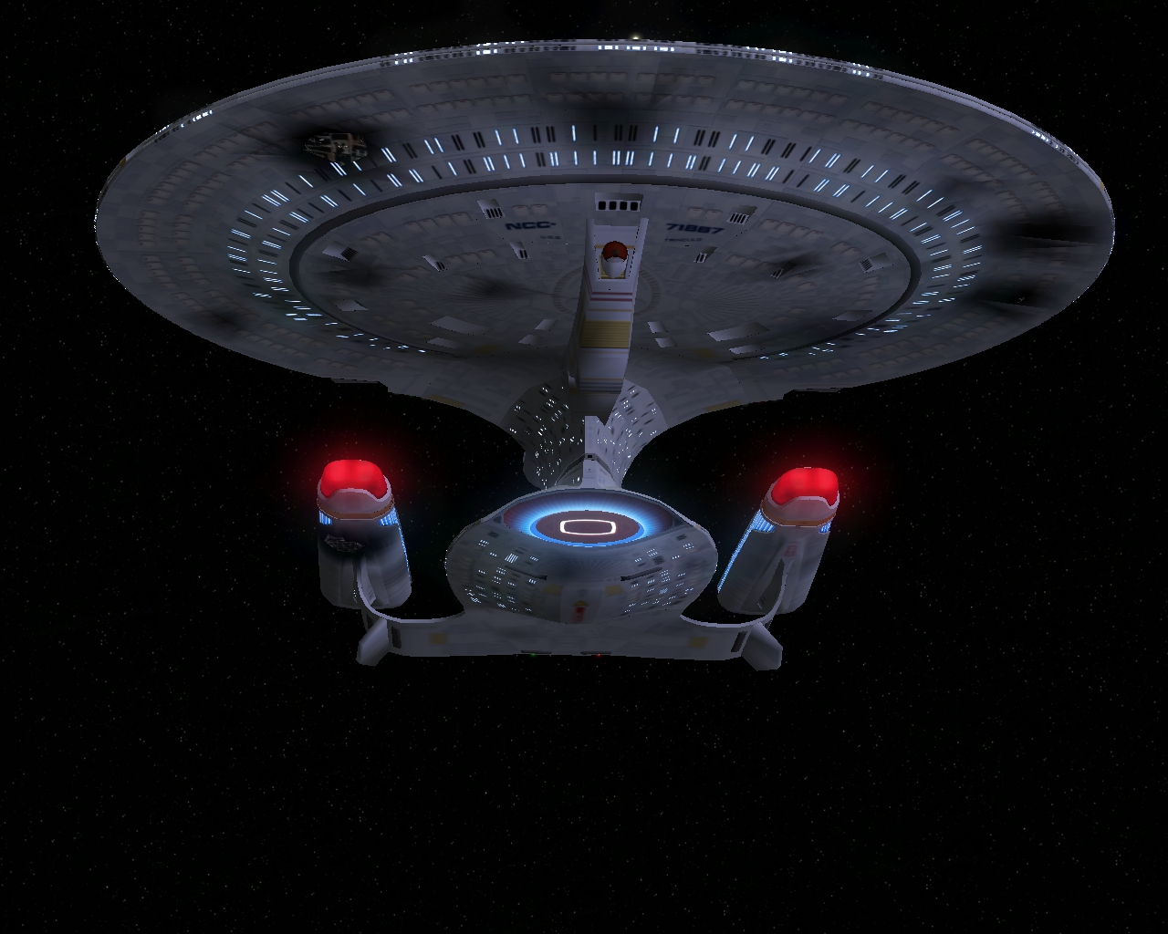 Desweiteren werden da schonwieder Designelemente der Einzelteile überlagert. Zum Beispiel der rote Starfleet-Pfeil an der Innenseite der Warpgondeln oder dieser Streifen da hinter den Bussardkollektoren.