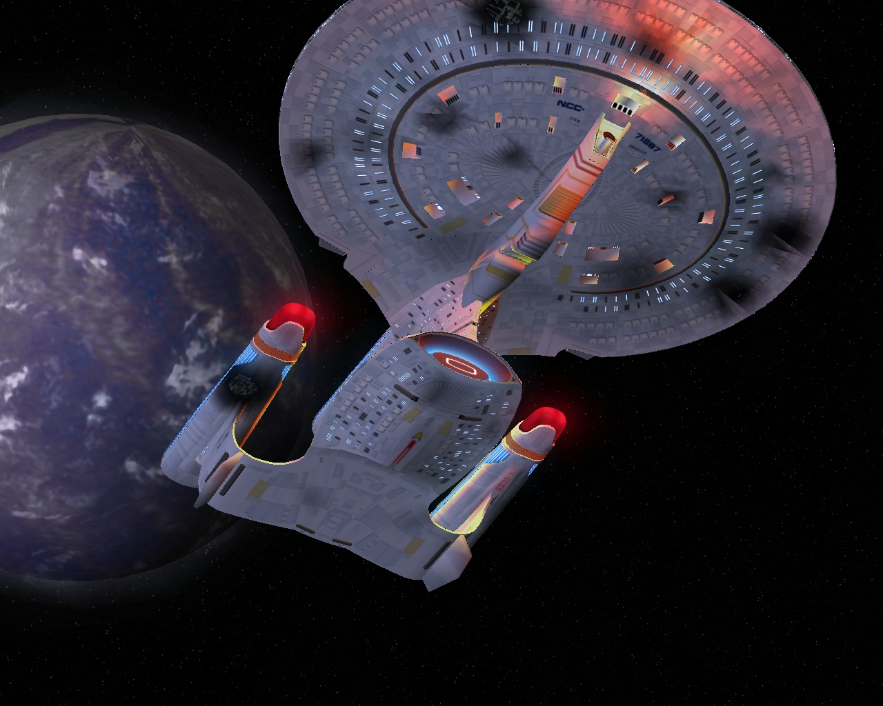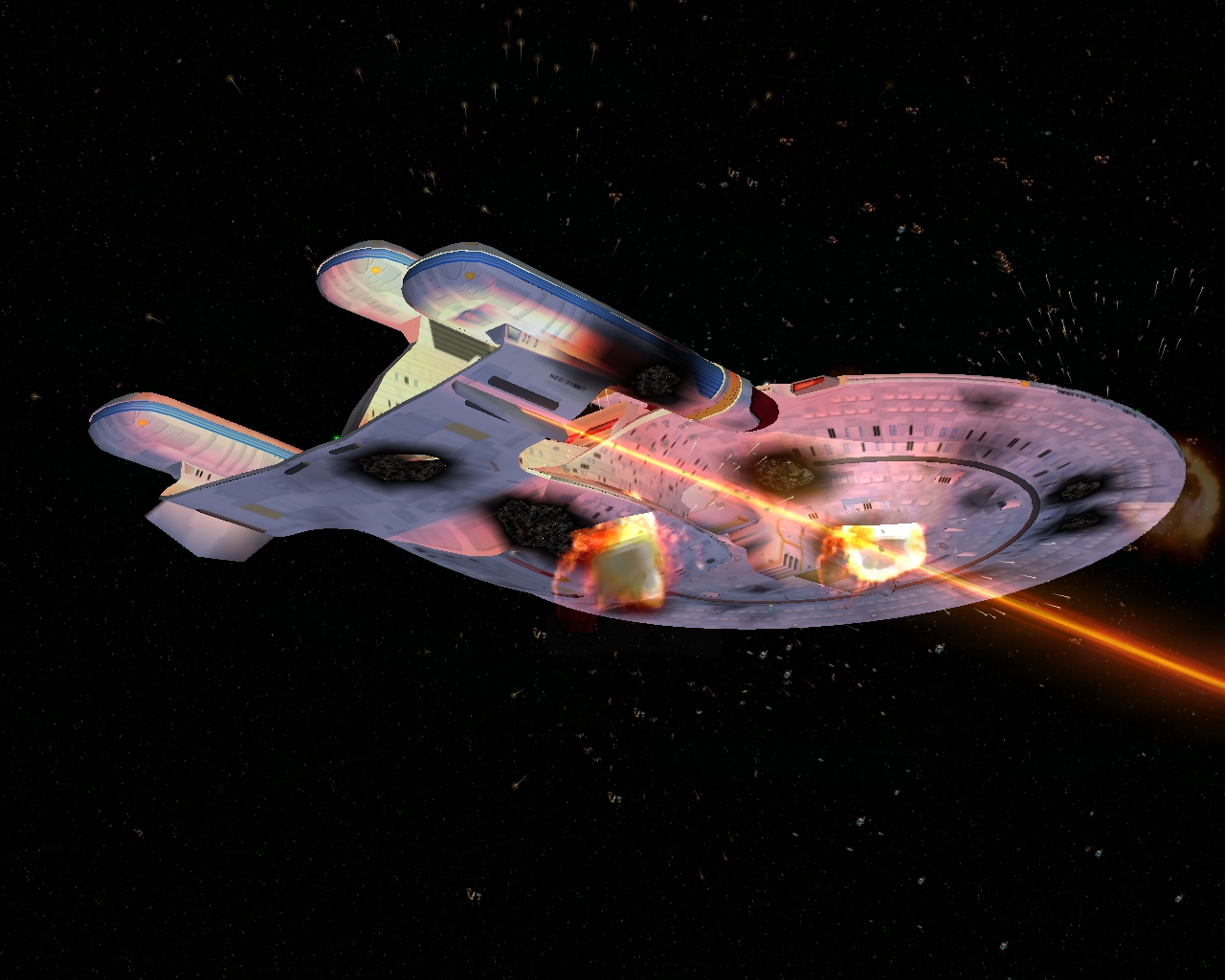 Ohh das schöne Schiff, wenn das die Ingenieure sehen. Die bekommen die Krise. Aber du hast das Problem ja ganz einfach mit der totalen Zerstörung des Raumschiffs gelöst. Tip Top!Zitat von Darthbot Beitrag anzeigenEin paar Bilder der USS Trinculo. Ein kleiner Kampf gegen die Kessok, und anschließend gegen die Klingonen. Den letzten Kampf habe ich nicht überstanden.