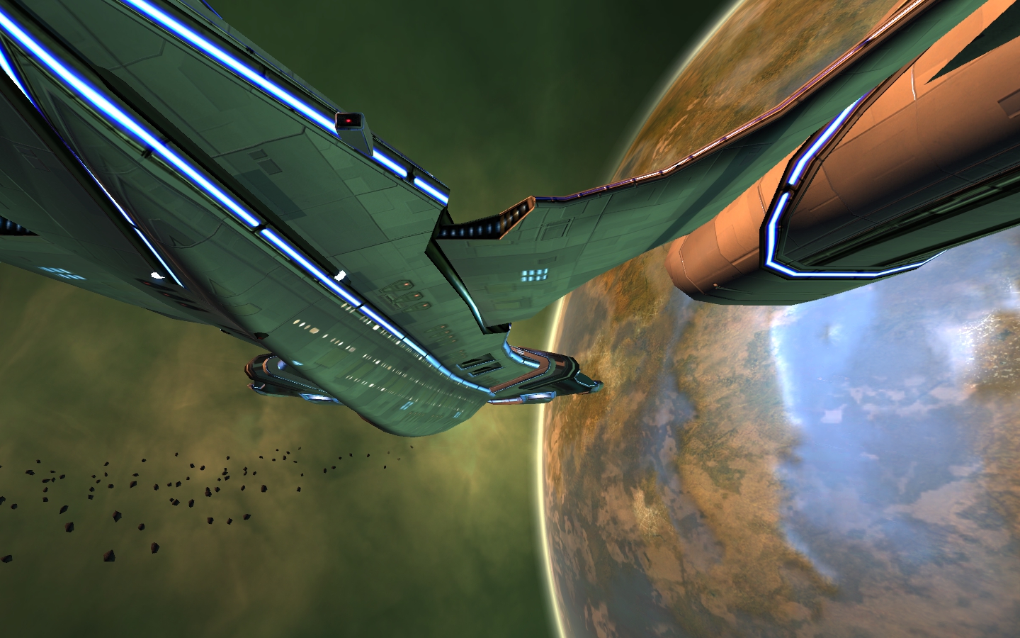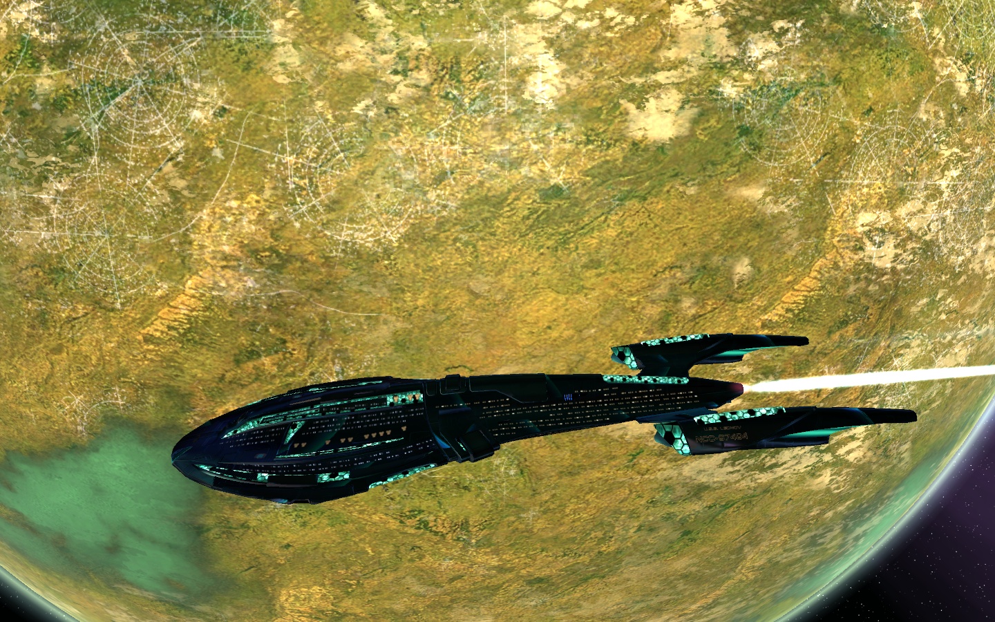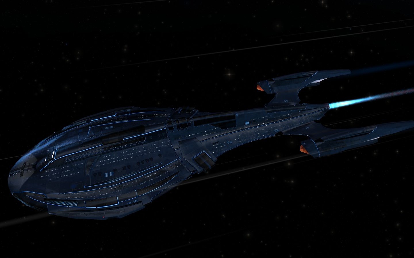 Tolle Bilder von euch. Ich bin ja gerade erst angefangen, und habe deshalb noch mein erstes Schiff. Wenn auch nicht mehr ganz original. Ist eine Mischung aus Miranda Klasse und Centaur.