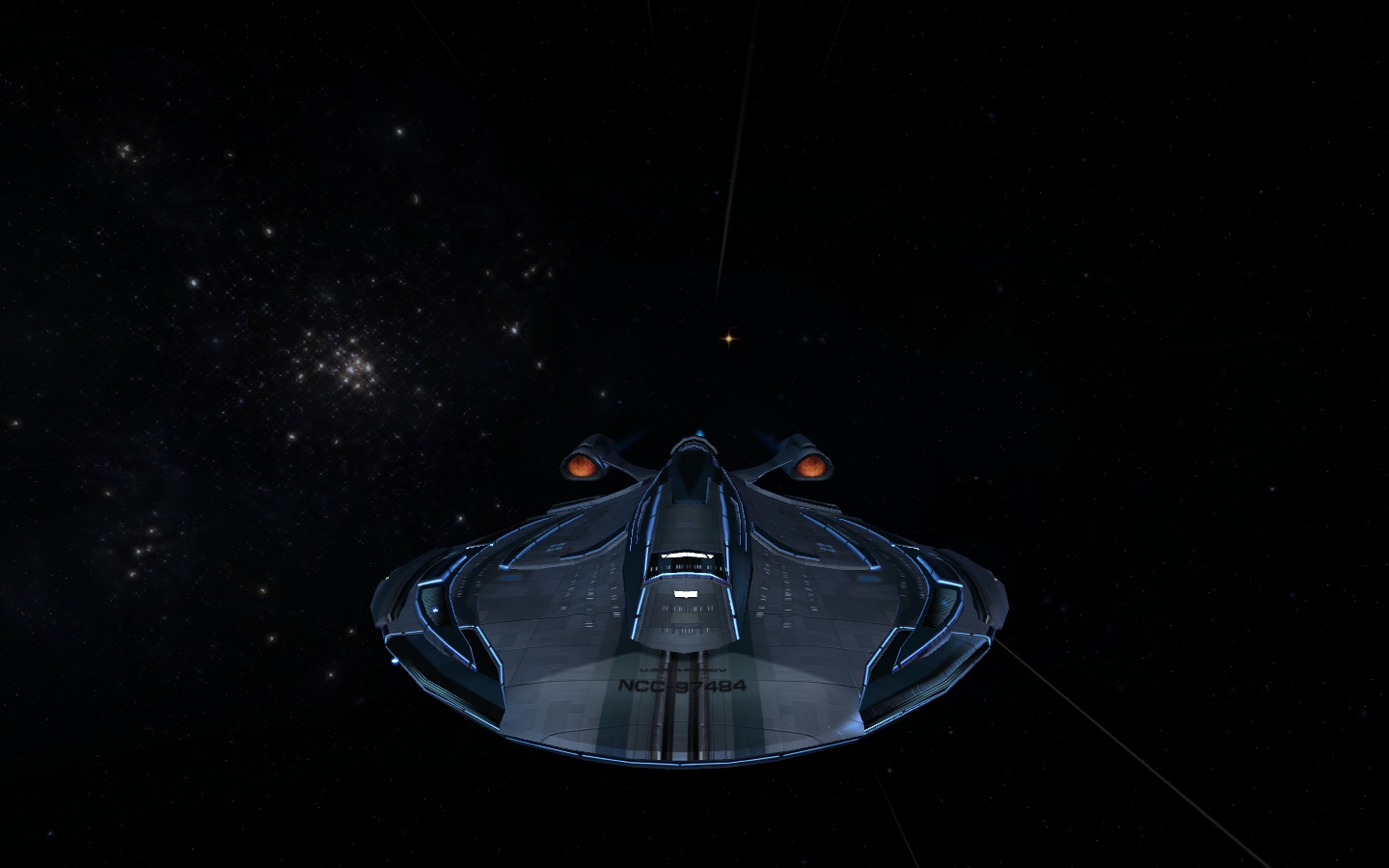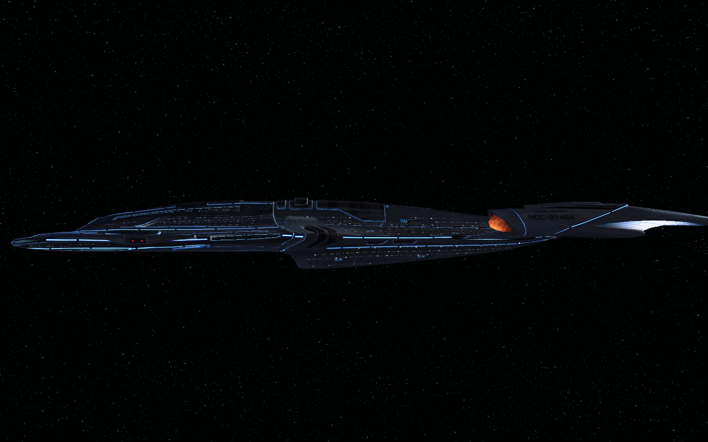 Da ich erst vor 10 Tagen angefangen habe, hier mal mein aktuelles Schiff, die USS Bagration, ein experimenteller Cheyenne-Refit für das 25. Jahrhundert