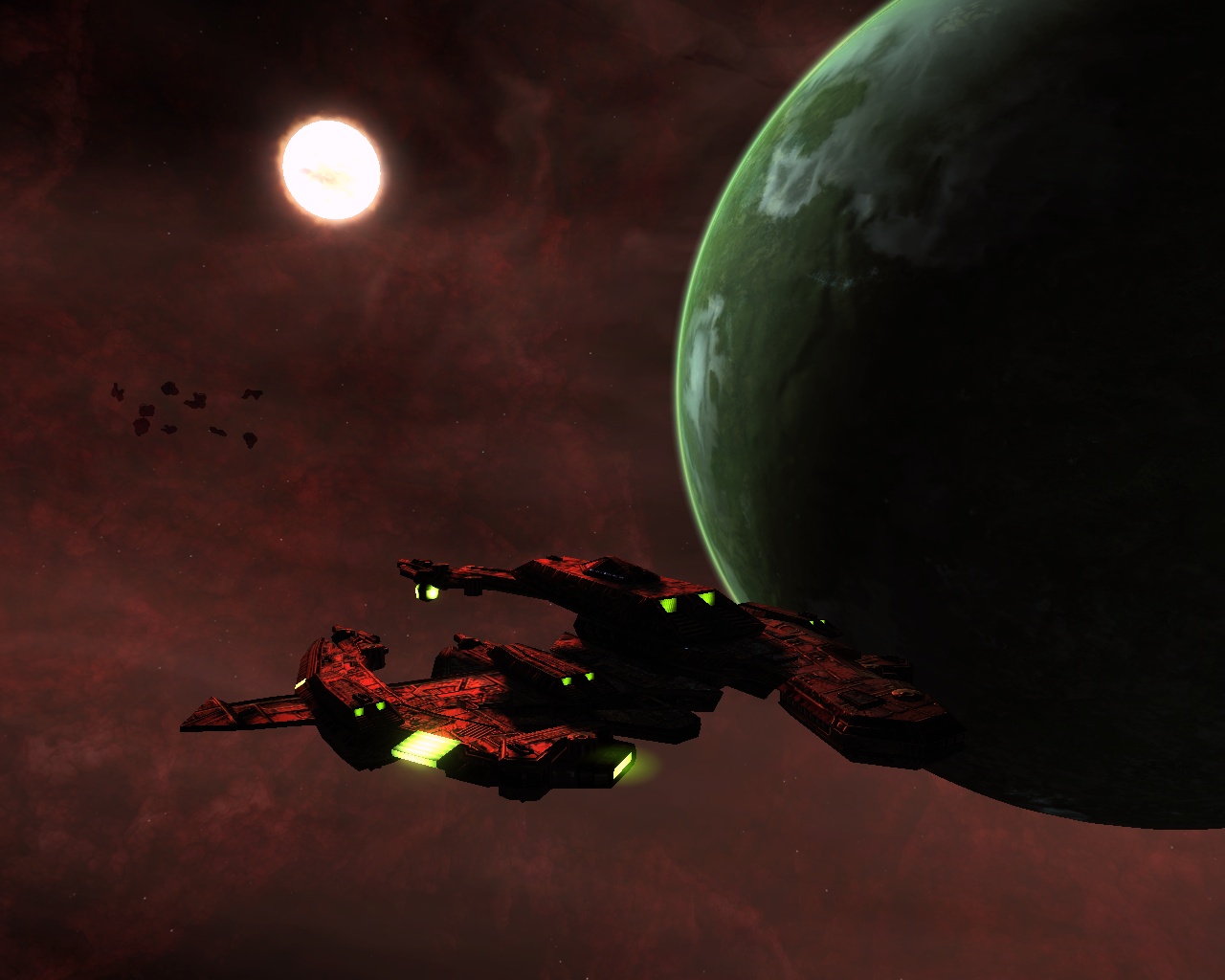 Macht definitiv Spaß, die Flunder. Hab sie mit Polaron DHCs und Turrets sowie dem Hyper-Plasma-Torpedo von den Rommies bestückt. Dazu noch entsprechende Polaron-Konsolen und das Jem'Hadar Set. Die restlichen Setteile für den Torpedo kommen auch noch dazu, sobald ich mit dem Adapted Honor Guard Bodenset fertig bin.