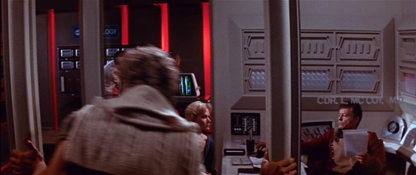 könnte es die szene in teil 2 sein nach dem angriff der reliant wo scotty den schwerverletzten mann zu pille bringt und der ihm nicht helfen kann. kurze zeit später ist scotty nämlich mit dem leichnam auf der brücke. zumindest glaub ich mich so daran zu erinnern. is ne ewigkeit her das ich den film gesehn habe.