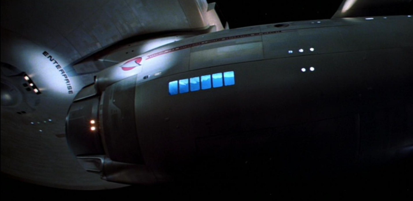 Wie viele Scheinwerfer beleuchten, in The Movie Picture, den hinteren "Enterprise" Schriftzug auf der Unterseite des Diskus Segmentes?