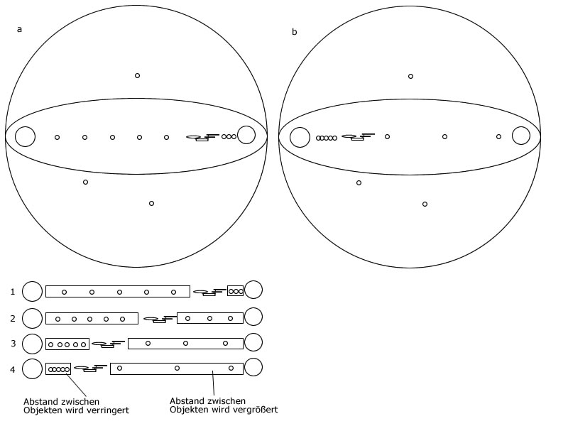 Kuck mal. Ich hab nen gefüllten Luftballon (prall) und klebe 4 Perlen in Abstand von 5 cm drauf. Nun lasse ich die Luft raus.