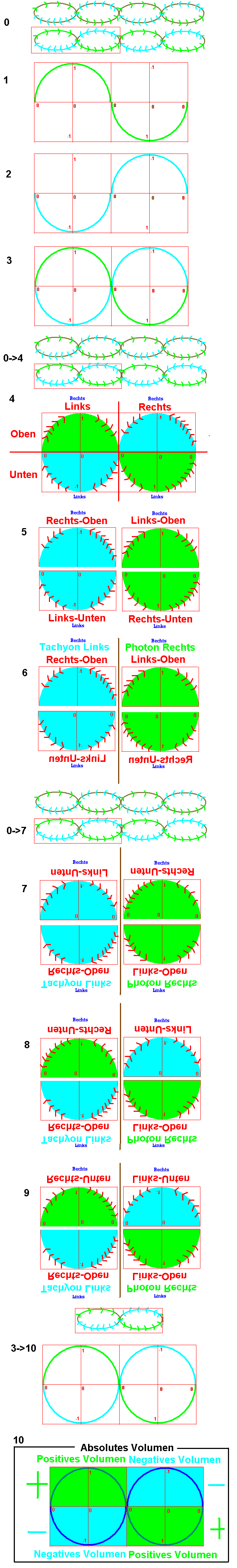 0->7 Rufen wir uns das "auf und ab Hüpfen" des Photons/Tachyons VON OBEN GESEHEN in der Endlosschleife in Erinnerung, die der Anfang meiner Überlegungen war. ROTER KASTEN