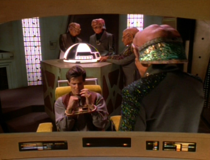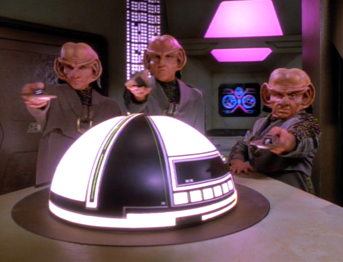 also in all den Episoden wo Ferengi auftauchten, haben die doch vor allem an diesen Halbkugeln gesessen, die mit Schichten versehen ist, die drehbar sind...