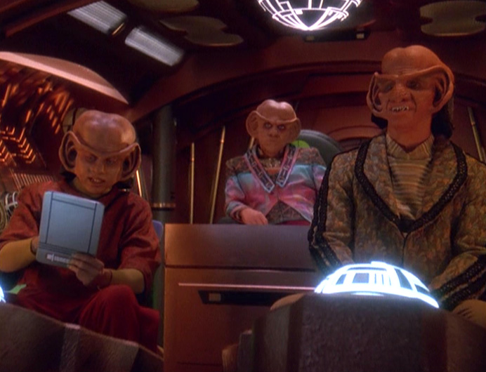Ich glaube, die Ferengi können ihre Konsolen mit Gedanken steuern. Da sind praktisch die Ferengis mit den Computern biologisch vernetzt.