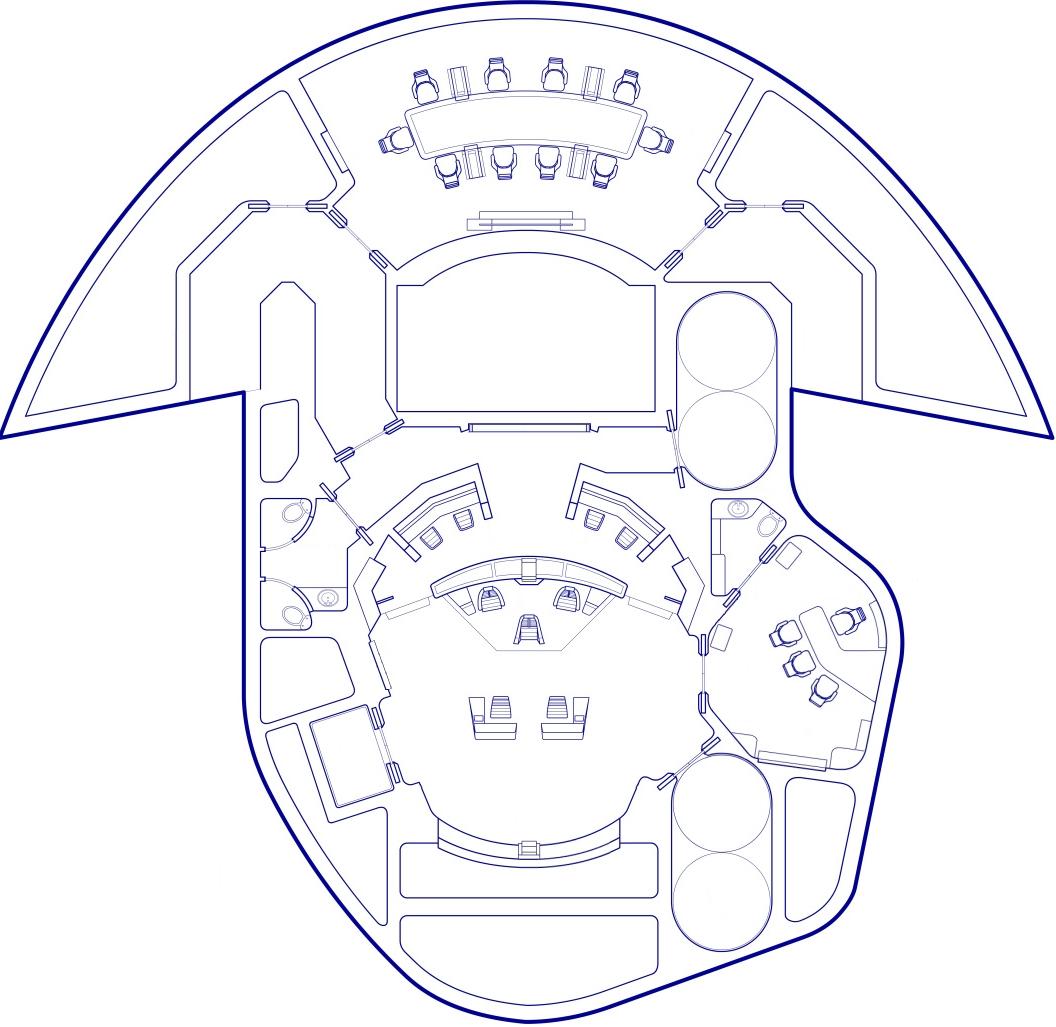 Wie ihr sehen könnt, habe ich meine Brücke noch mehr auf Schlachtschiff getrimmt, sieht jetzt mehr aus wie die aus "Yesterdays Enterprise". Die Stationen Links und Rchts vor dem Bildschirm sin die von uns aus links die Conn und rechts die Ops. Dann habe ich im Kommandobereich noch die Seulen weg gemacht.