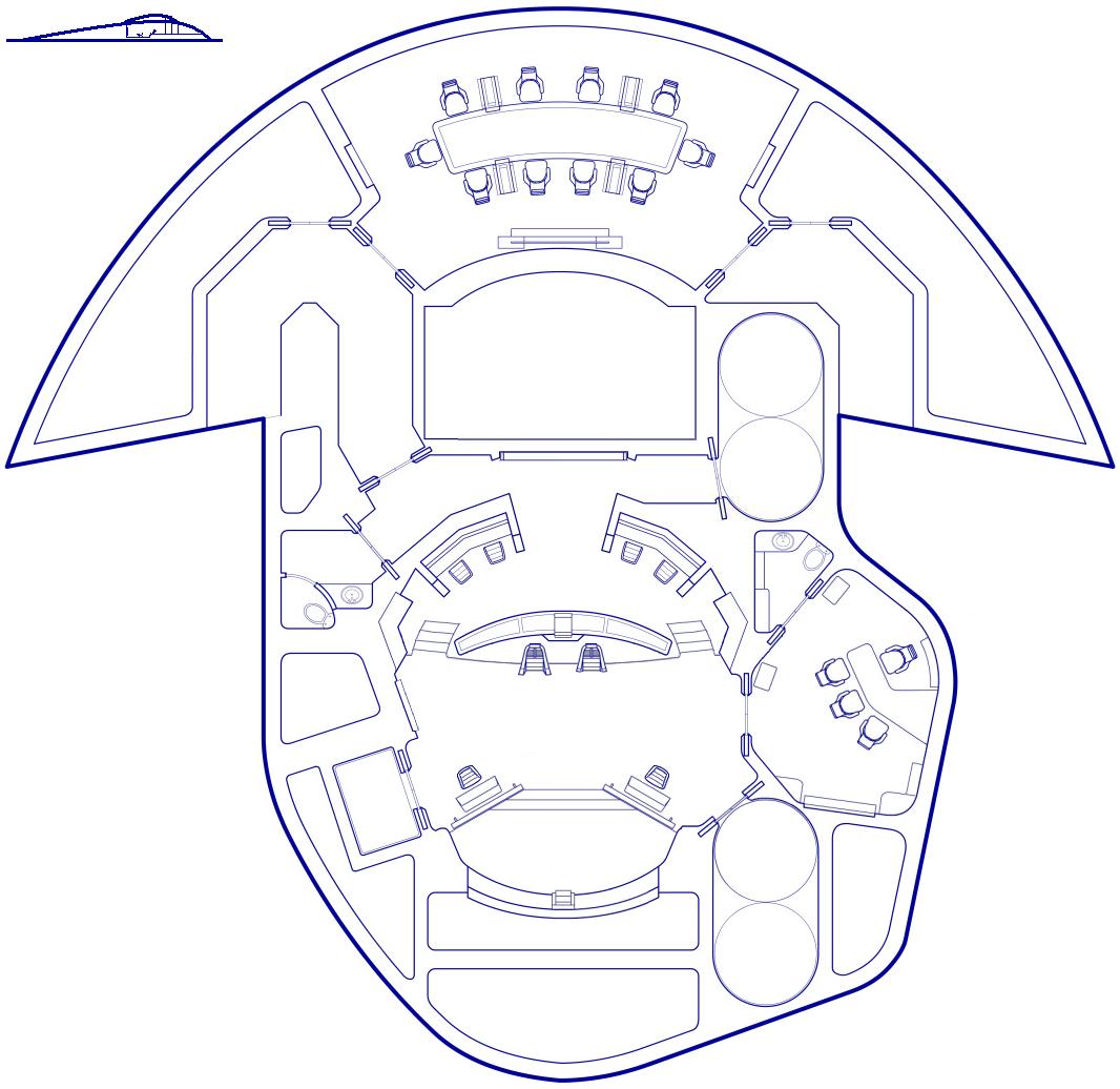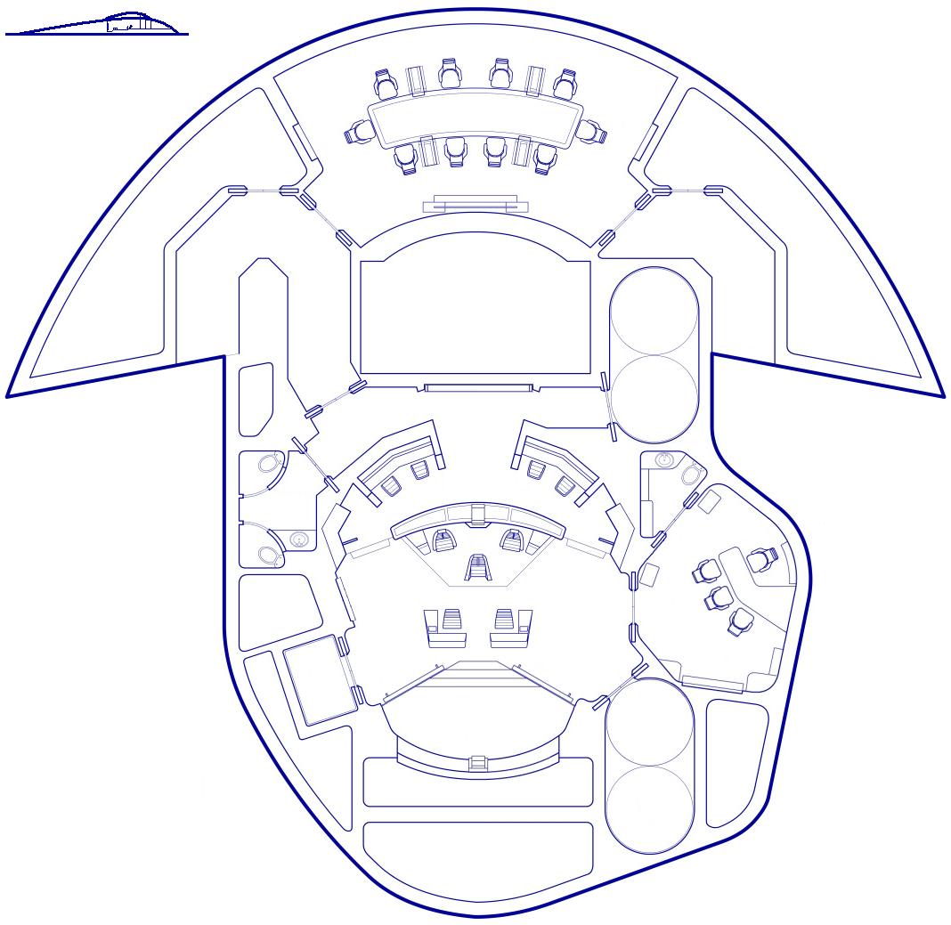 Wie ihr sehen könnt, habe ich meine Brücke noch mehr auf Schlachtschiff getrimmt, sieht jetzt mehr aus wie die aus "Yesterdays Enterprise". Die Stationen Links und Rchts vor dem Bildschirm sin die von uns aus links die Conn und rechts die Ops. Dann habe ich im Kommandobereich noch die Seulen weg gemacht.