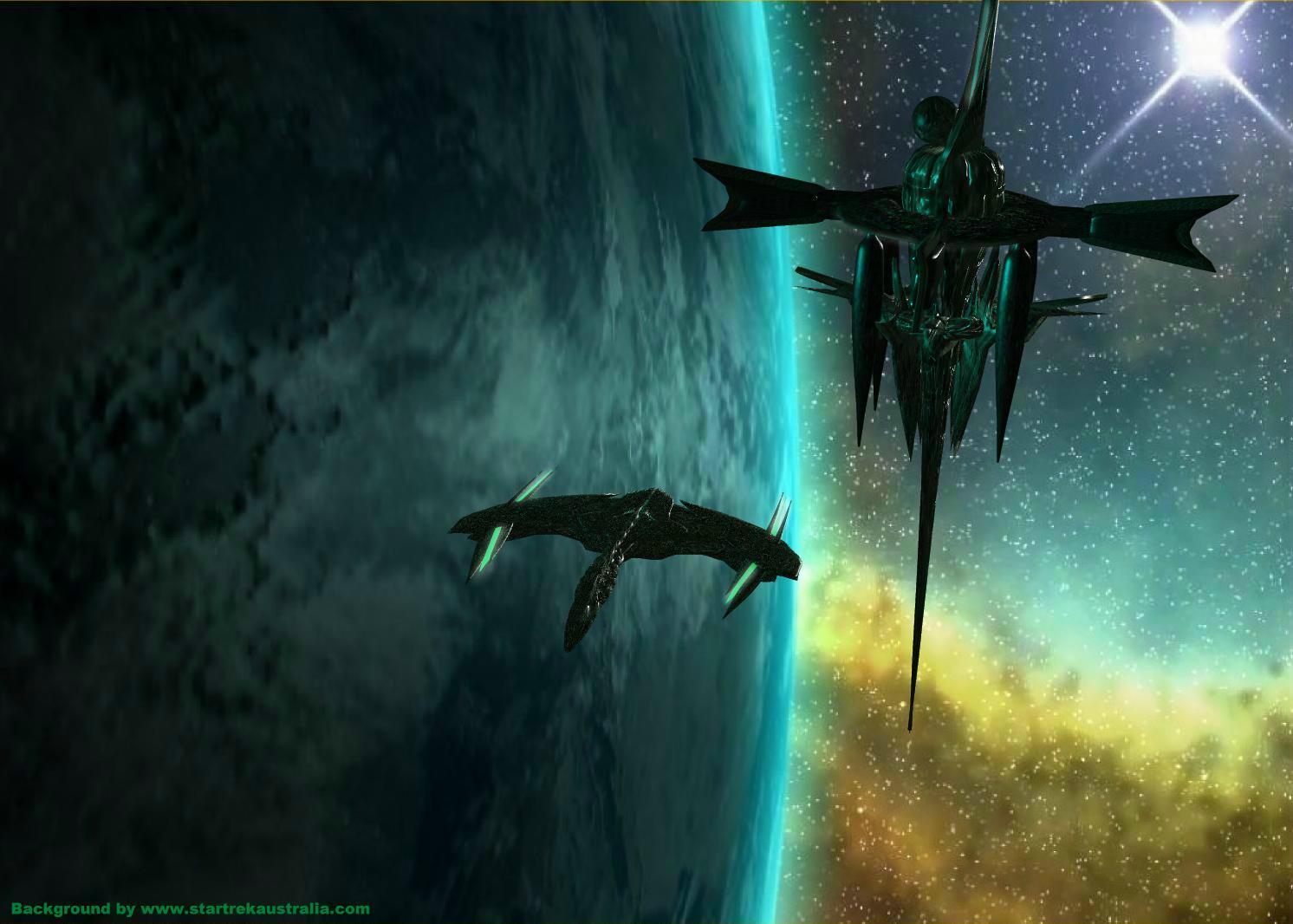 Die obere Schiffsklasse düfte auf einem der Entwürfe für die Nova-Klasse basieren, wie sie am Ende des TMs zur Enterprise-D abgebildet war. Dort gab es auch ein Schiff mit "modulartiger" Untertassensektion.Alle meine Fan-Fiction-Romane aus dem STAR TREK-Universum als kostenlose ebook-Downloads !