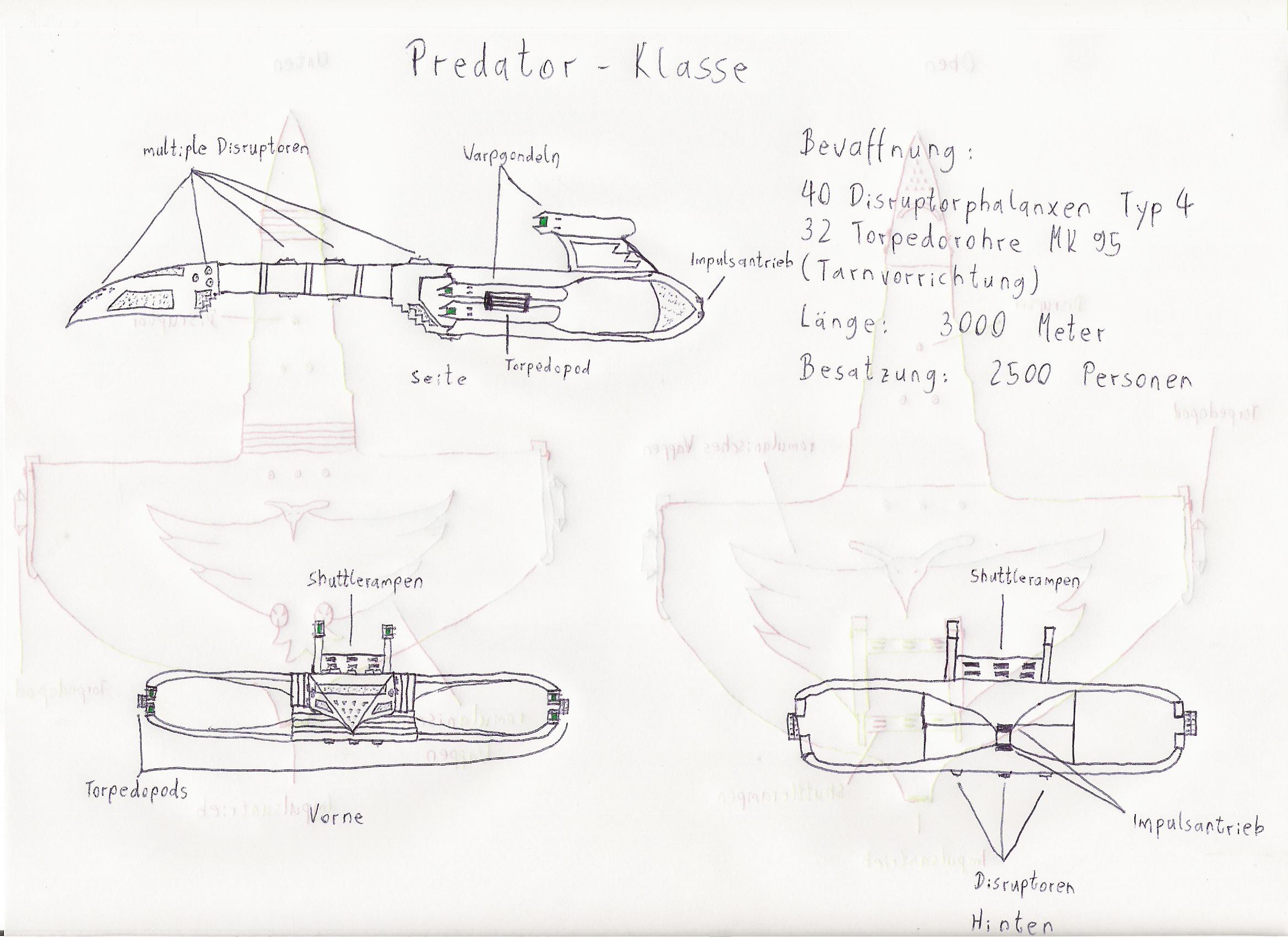Eins der Dinge, das mir an dieser Klasse besonders gefällt und ich in deiner Zeichnung vermisse ist der Doppelte-Ente-Refit-Impuls-Antrieb an den Seiten.