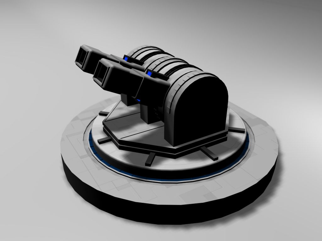 Soooo, hab das Geschützturm-Design wenigstens ganz grob fertig. Arbeitszeit auch nur ca. 30 min. Inspiration war eine Tarantula-Klasse Geschützplattform aus WH40k (Bild hab ich beigefügt). Natürlich fehlen noch Details etc., aber ich muss erstmal einen Weg finden, das Schiff zu texturieren und dort Details einzufügen, bevor ich mich mit dem Kram rumschlage...Zuletzt geändert von Drakespawn; 08.01.2013, 18:47.