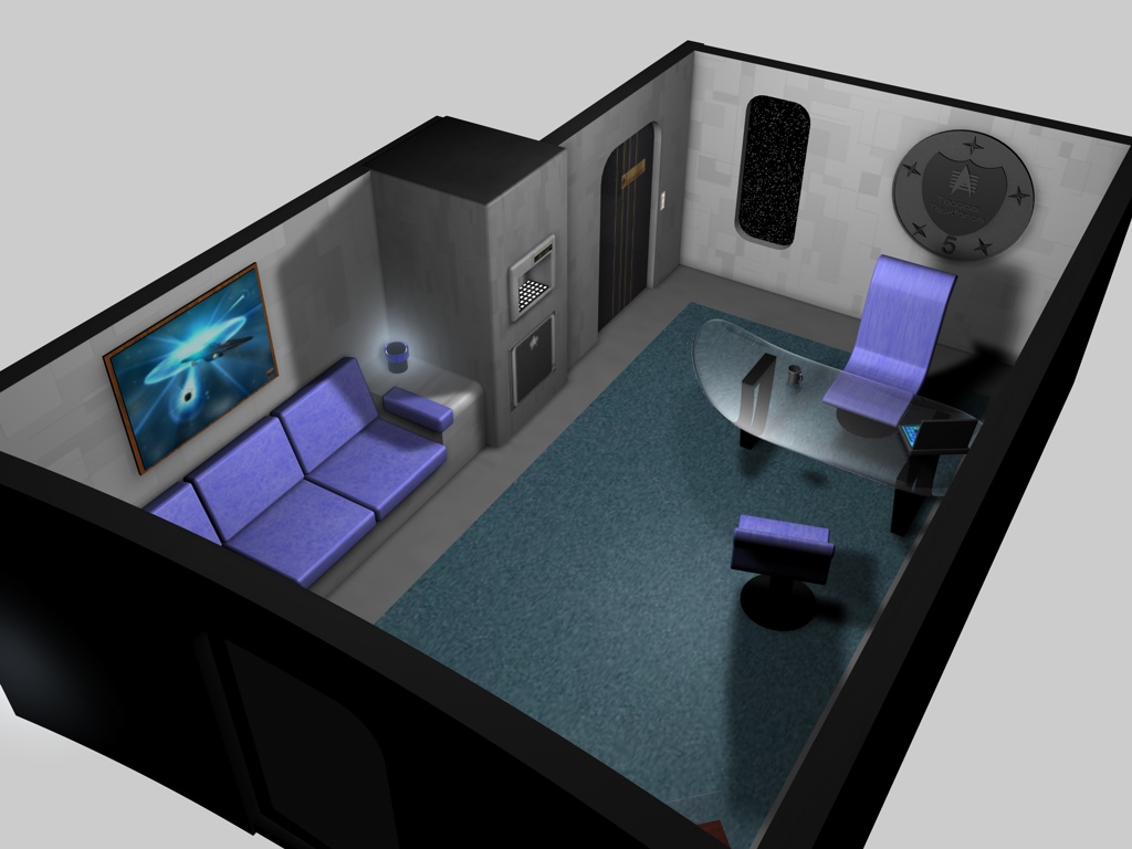 . Einziges Manko: Das Geländer um den Sitz des Captains herum wirkt irgendwie fehl am Platz. Vorschlag: Das seitliche Geländer löschen und stattdessen vll. ein oder zwei Konsolen dahinter platzieren, so im Stile der der restlichen Stationen. Aber wie schon Erebos geschrieben hat: Du bist der Cäpt'n. Es muss ja schließlich dir gefallen.^^