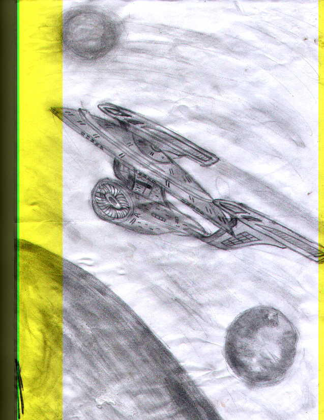 Hallo, habe mal wieder was zu zeigen eine von Hand gefertigte Zeichnung von einem, von mir frei erfundenen Förderationsraumschiff, das sich gerade im Orbit eines Planeten mit zwei Monden befindet.