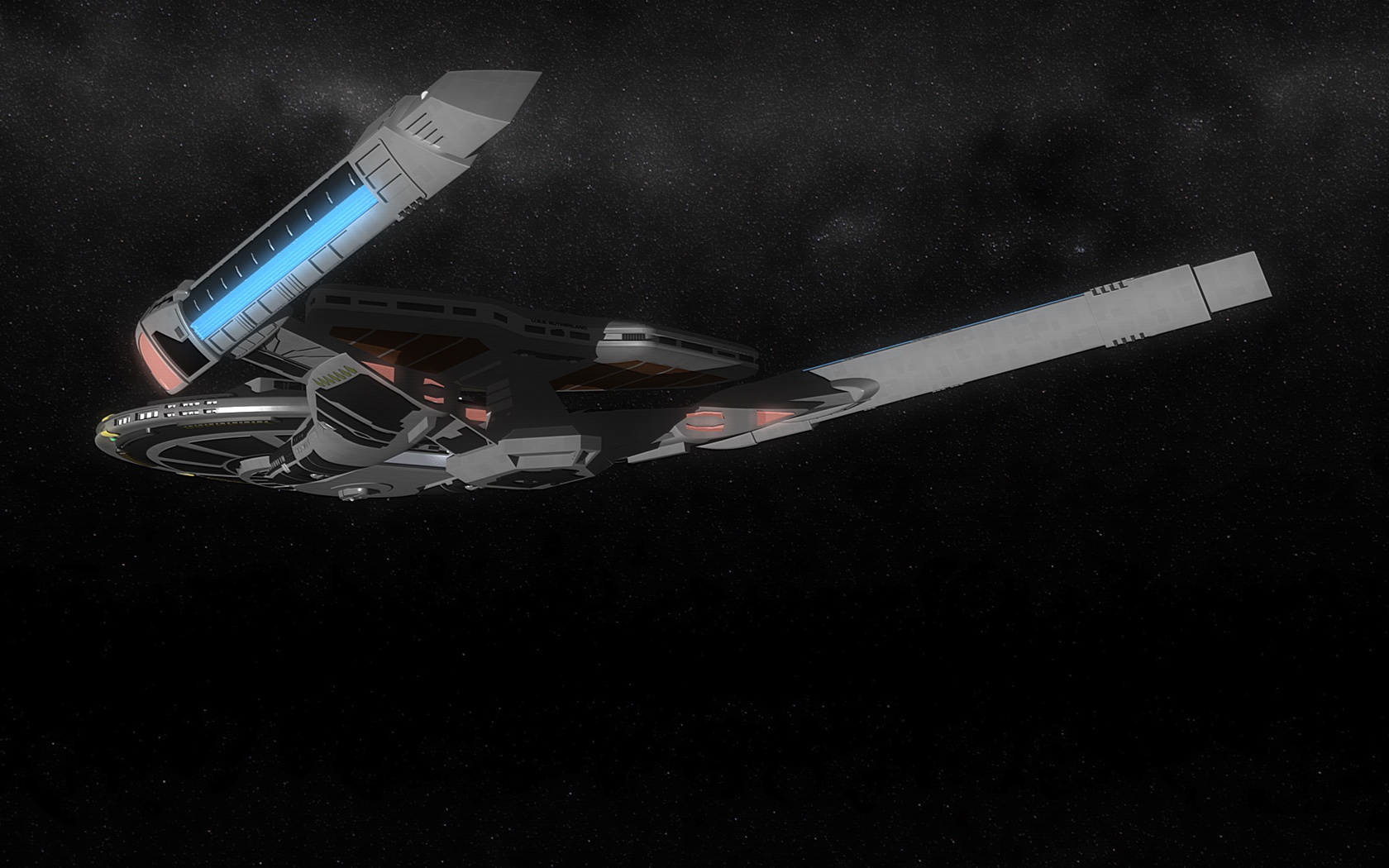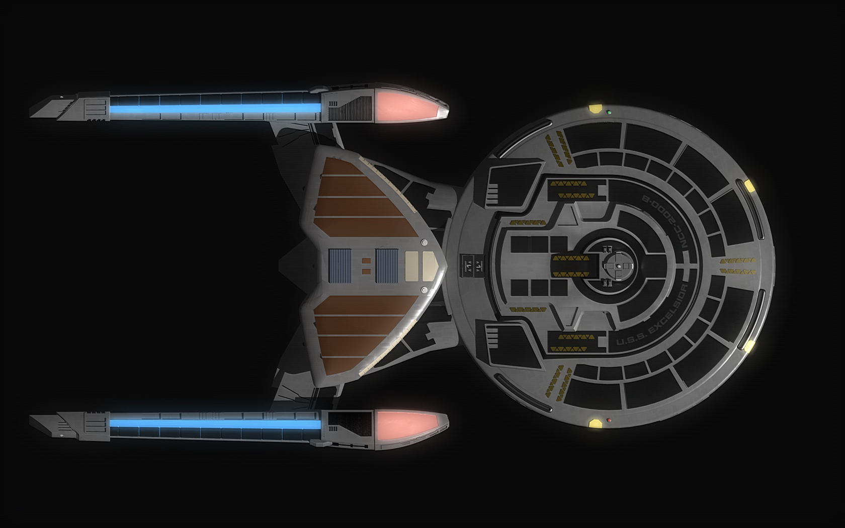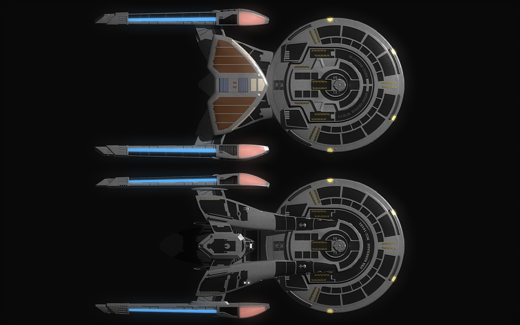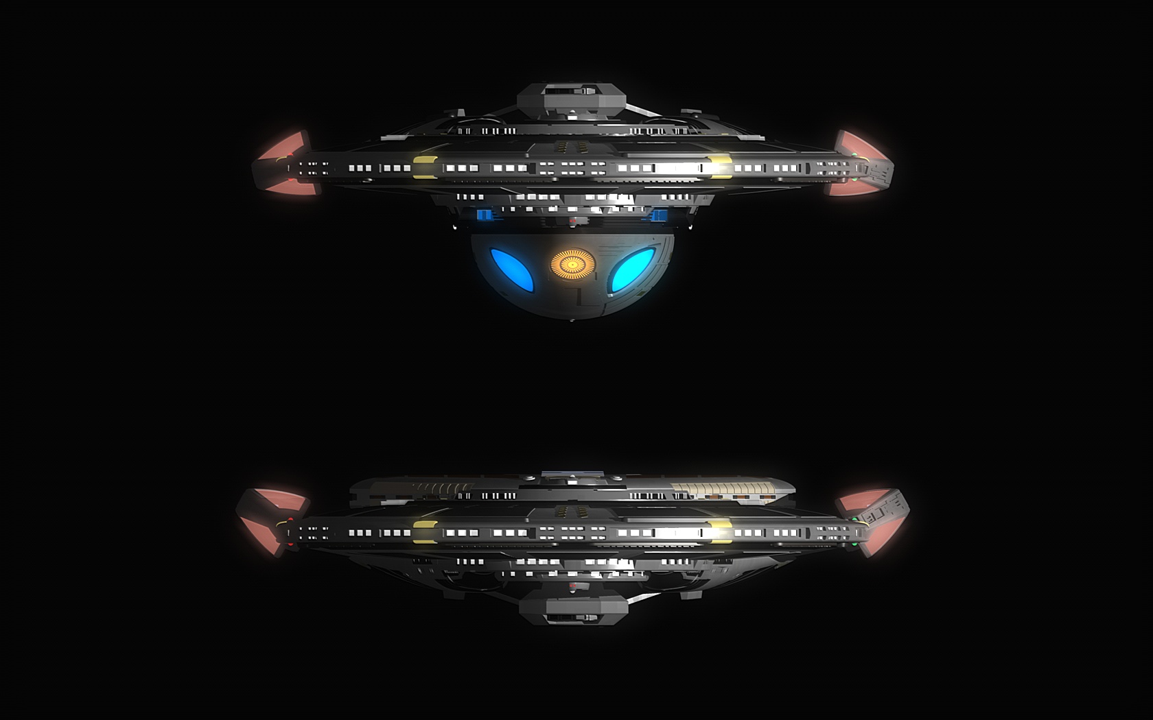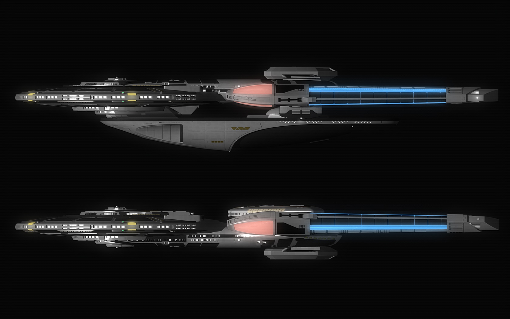 Toll, schon mal ein Anfang. Aber ich dachte da eher an die "Innereien", größe und lage des Fusionsreaktors, Decks usw.