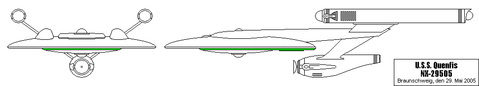 Vor allem in der Schrägansicht kommt die Quenfis sehr gut rüber, eine guter Zwischenschritt zwischen NX-Klasse und Constitution-Klasse.