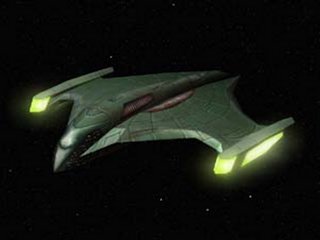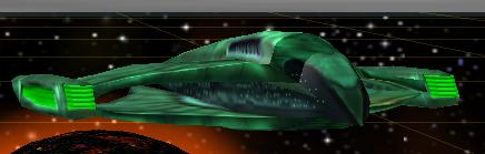 Die Shrike- Klasse der Romulaner sieht im Prinzip aus wie ein moderner Rom-BoP mit verkürzten Schwingen und grünem Anstrich. Vorne am Bug, meiner Meinung nach, Pulsdistruptoren, gibt es 2 "Zähne".