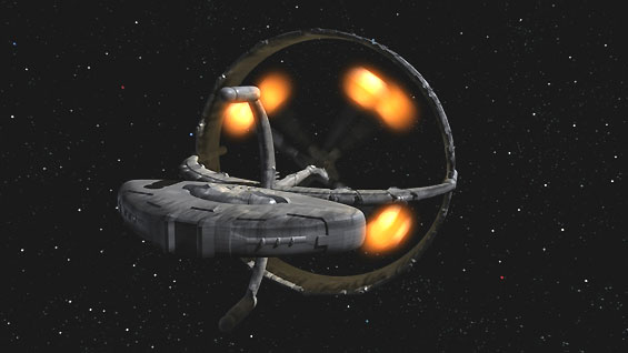 Eigentlich kein "echtes" Schiff, sondern ein ausgehöhlter Asteroid, der mit Atomantrieb unterwegs ist. TOS-R hat den Asteroiden ein wenig verfeinert, es blieb aber prinzipiell ein dunkler Fels im All.