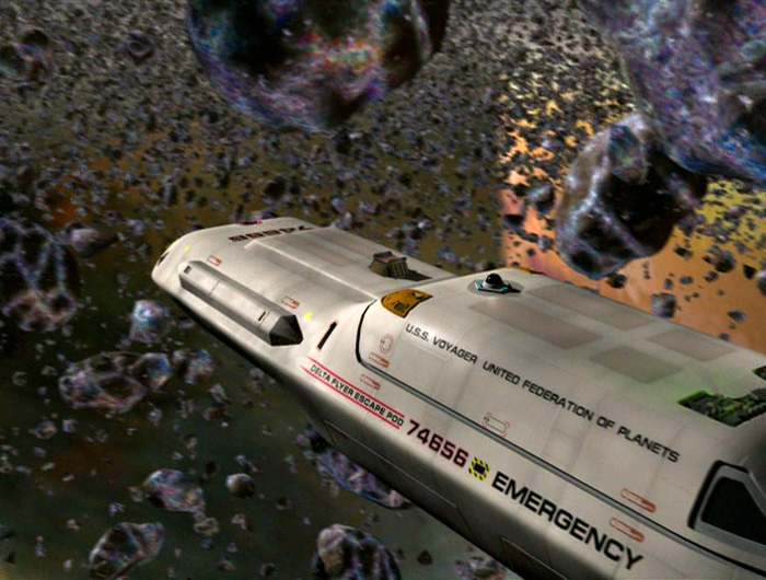 Ja, die Rettungskapsel des Delta-Flyer, die man in der Folge "Der gute Hirte" sah, war auch gerade mal so groß, dass man darin halb-sitzend, halb-liegend drinnen sein konnte. War auch schon beim Delta-Flyer ein Problem, mehrere dieser Kapseln platztechnisch unterzubringen. Dort waren sie aber wahrscheinlich auf der Unterseite.