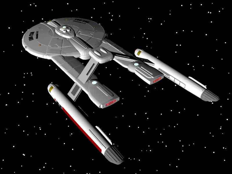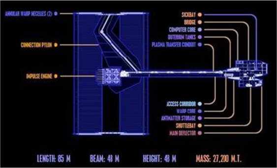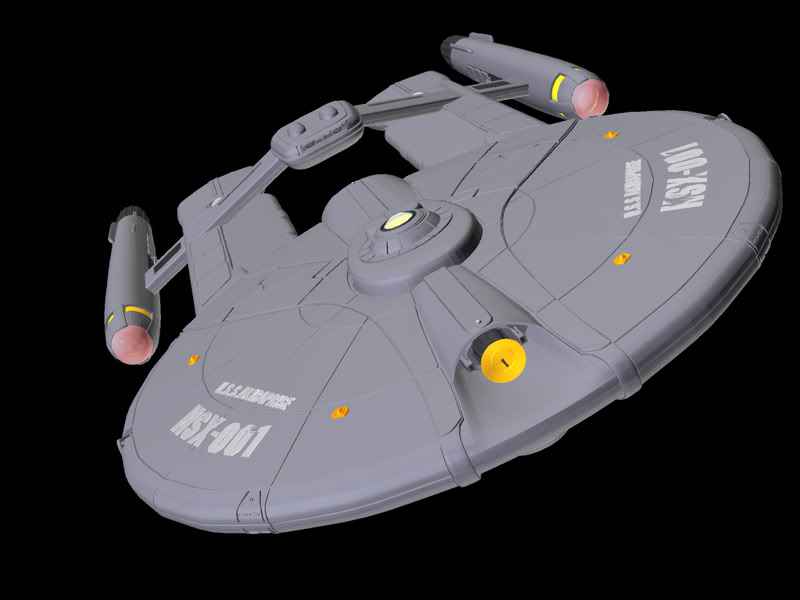 Aber ursprünglich war das Schiff nicht als Bestandteil des ST-Universums gedacht, was auch die ziemlich andersartige Antriebsmethode erklärte im Gegensatz zu jenen Schiffen, die man in TOS und ST1 sonst gesehen hat, die doch deutlich vom Gondel-Design für Warp-Schiffe geprägt war.