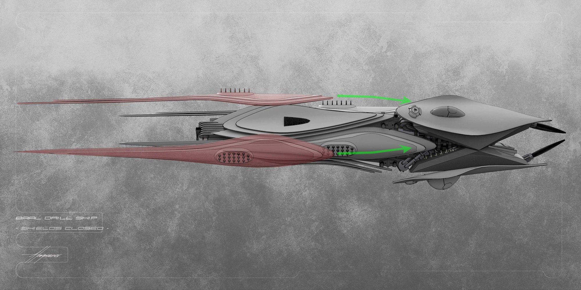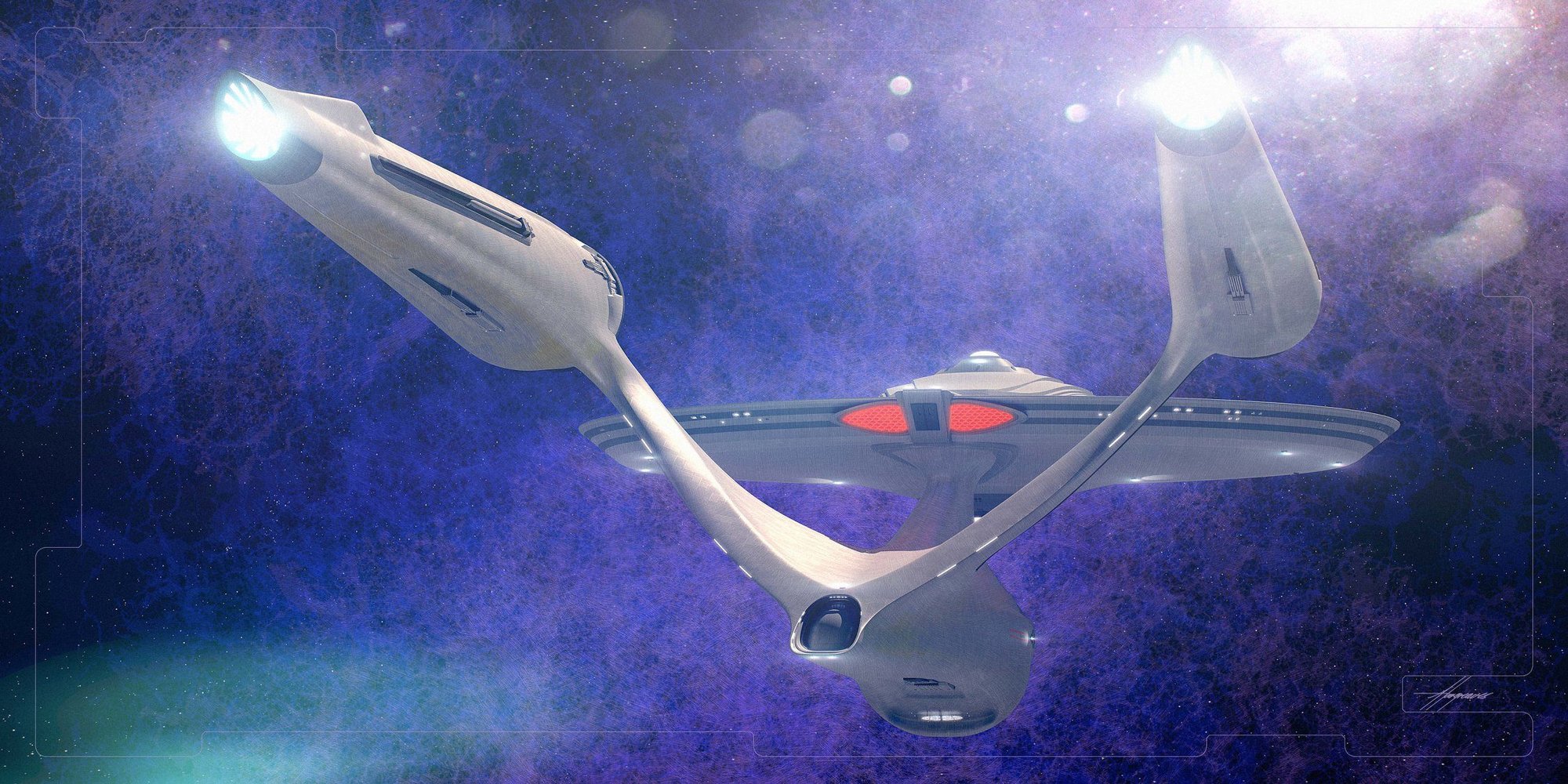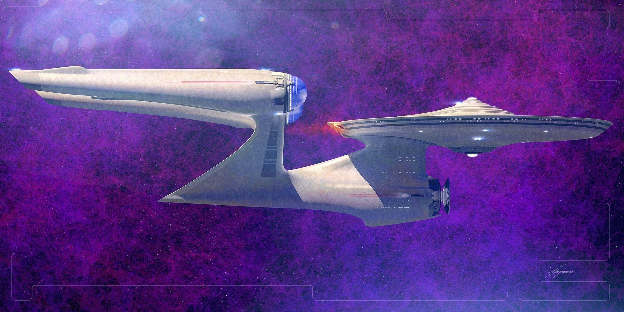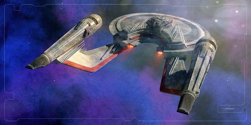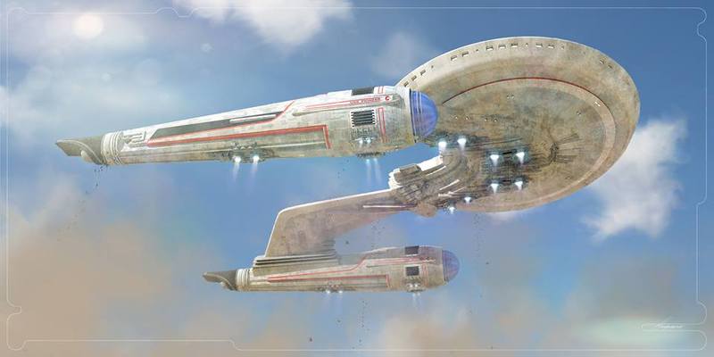 Skizzen von Sean Hargreaves zur USS Franklin, die wie man sieht ursprünglich eine andere Gondel-Anordnung hatte. Hargreaves hat bereits weitere Skizzen angekündigt: