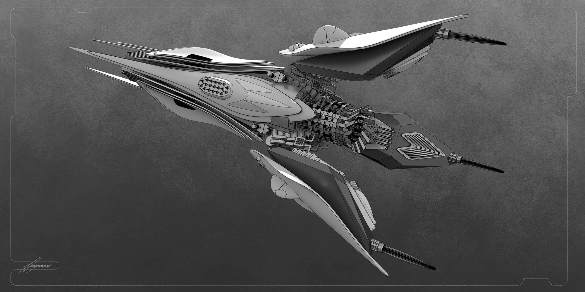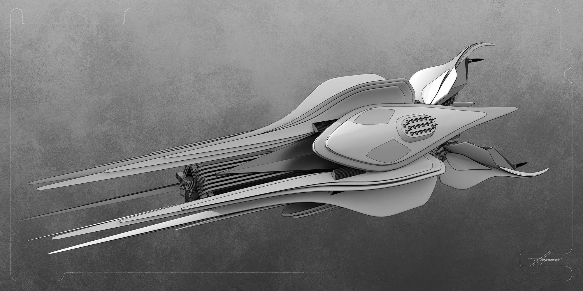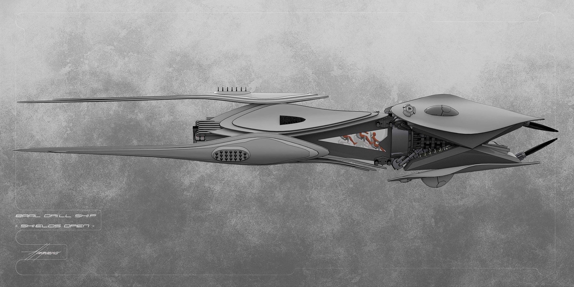 Skizzen von Sean Hargreaves zur USS Franklin, die wie man sieht ursprünglich eine andere Gondel-Anordnung hatte. Hargreaves hat bereits weitere Skizzen angekündigt: