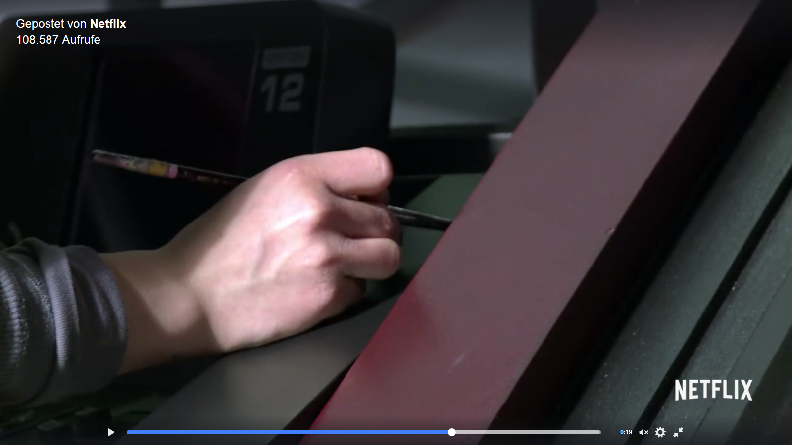 Der Tisch dahinter weist rote Bereiche auf, die zu dem screenshot eines Desks passt.