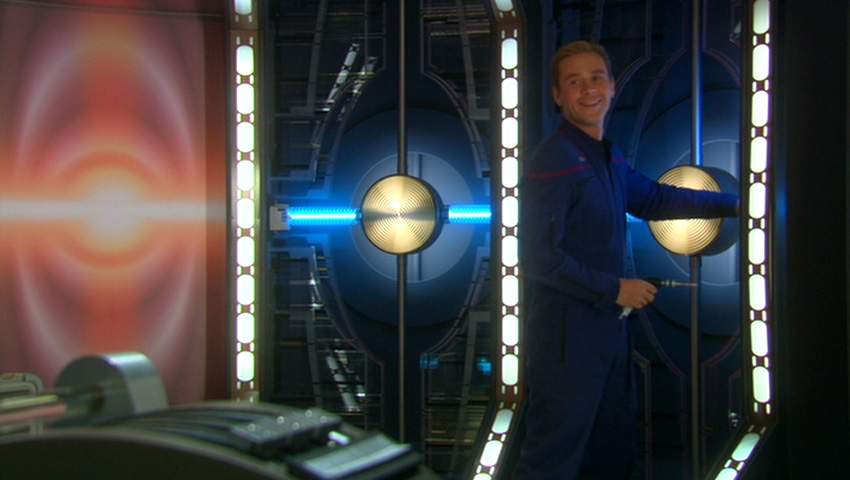 der transporterraum hat was steam-punkmäßiges, gefällt mir extrem gut! (1000× besser als der hässliche bunte hintergrund bei der letzten staffel ENT)