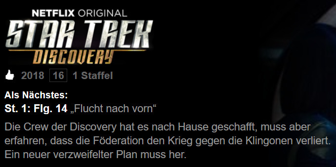 Jedenfalls habe ich sowas von Lust die letzte Folge Discovery zu sehen... menno, noch eine ganze Woche!