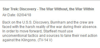 Wenn man davon absieht war die Folge an sich nicht so schlecht, ich merke aber dass durch diese ganze Zeitreisen - Paralleluniversengeschichten ich mich nicht mehr auf die Handlung verlasse, ich rechne immer damit dass das Geschehene irgendwann wieder revidiert wird. Etwas ärgerlich, so etwas sollte eigentlich eher unerwartet kommen. Was mich wirklich gestört hat war der verheulte Ash Tyler - ist ja ok dass ihn das Vergangene fertigmacht, aber muss er deswegen permanent den Tränen nahe sein ? Und dann der 'heul,heul'-Dialog mit Michael, da stellen sich bei mir alle Nackenhaare auf - wie ich so ein Emotionsgesülze hasse...