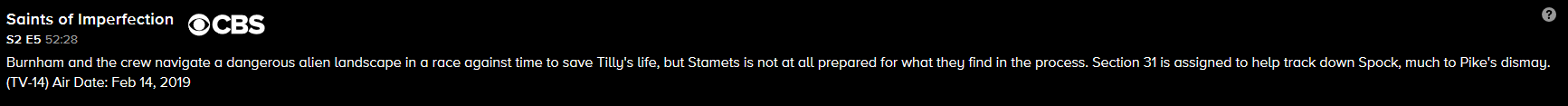 Michael Burnham und die Crew der Discovery bahnen sich einen Weg durch eine gefährliche fremde Alien-Welt, um Tillys Leben retten zu können. Sektion 31, die geheime Organisation, der sich Georgiu angeschlossen hat, ist beauftragt worden, den flüchtigen Spock zu fassen. Pike gefällt das ganz und gar nicht, denn er weiß nicht, was Sektion 31 mit Spock anstellen wird, sollten sie ihn in die Finger bekommen.