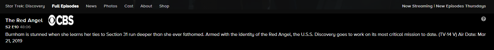 In der Folge soll das Geheimnis um den Roten Engel Endlich gelüftet werden. Mit dem Wissen um dessen Identität startet die Discovery in eine gefährliche Mission.