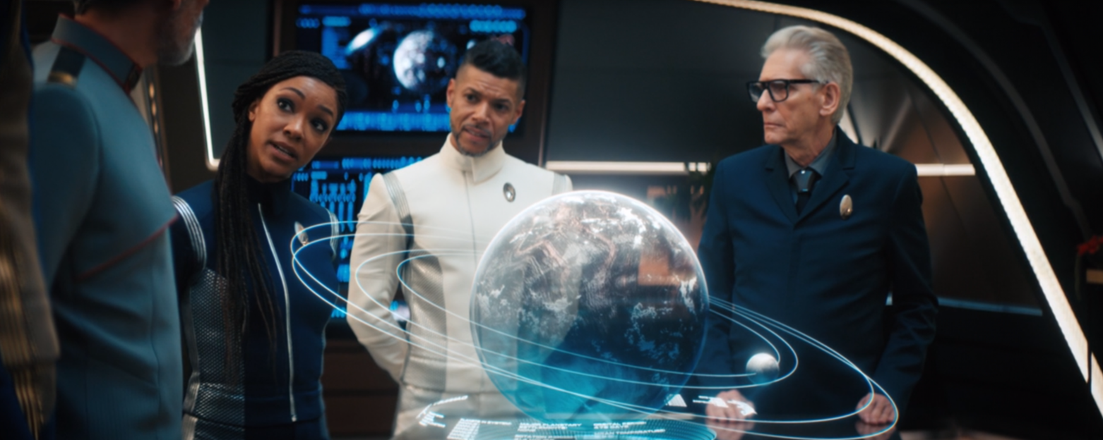 Also während die Anspielung auf TOS mit der Lupe zu suchen ist, erinnert mich Carl eindeutiger an Q, wie zu sehen in der TNG-Folge "Willkommen im Leben nach dem Tode". Wie Q bietet auch Carl einer todgeweihten Person an, ihre Vergangenheit zu ändern. Auch wenn nach Folge 1 von "Terra Firma" noch nicht deutlich ist, was die charakterlich sichtlich veränderte Georgiou tun muss, um ihr Schicksal zu ändern. (Ihre Krankheit und der Effekt, dass sie durch Dinge durchgreift, ist tatsächlich nicht ganz neu in "Star Trek". In der "Enterprise"-Folge "Der Vorbote" erging es einem Sphärenbauer, der aus den Umweltbedinungen seiner Heimatdimension gerissen wurde, genauso.)
