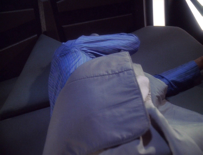 Bei DS9 sieht man ab und zu, wie einer der Offiziere sich im Bett auf so ein seltsames Dreieck als Kopfkissen legt...