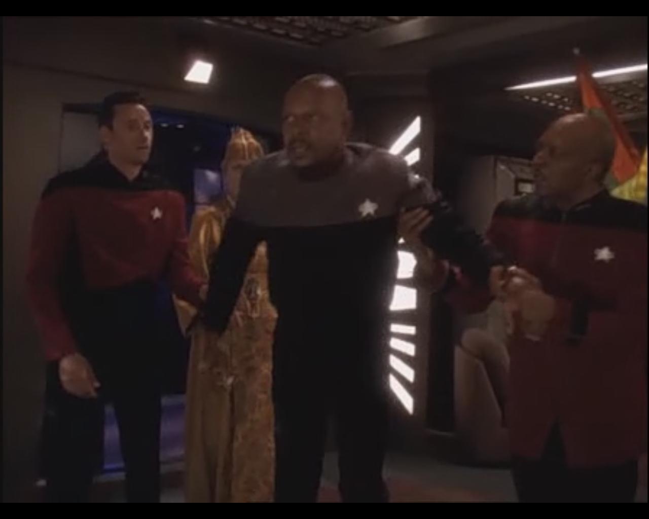 So wirklich bestätigt wurde eigentlich nie, wie das mit den Uniformen gemeint ist. Es gibt die Theorie, dass es sich bei den The Next Generation-Uniformen um die regulären, etwas offizielleren Uniformen handelt, während die Deep Space Nine-Einteiler quasi als Arbeitskleidung im Einsatz benutzt werden. Dies würde bedeuten, dass es durchaus beide Uniform-Varianten zur gleichen Zeit geben kann. Dass man selbst im Finale von Deep Space Nine noch die The Next Generation-Uniform sieht, ist ein Indiz, das für diese Theorie spricht. Auch die Episoden Homefront/Paradise Lost stützen diese Theorie, da man hier sieht, wie Sisko, wenn er die Erde besucht, seine Uniform wechselt.Zitat von Anthea Beitrag anzeigenIm Maschinenraum sieht man gleichzeitig beide Variationen der Unis... Somit ist meine Vermutung, die neuen Uniformen wurden zuerst an die ranghohen Offiziere verteilt, nicht mehr haltbar....