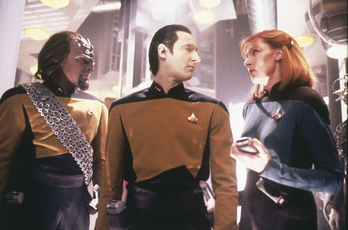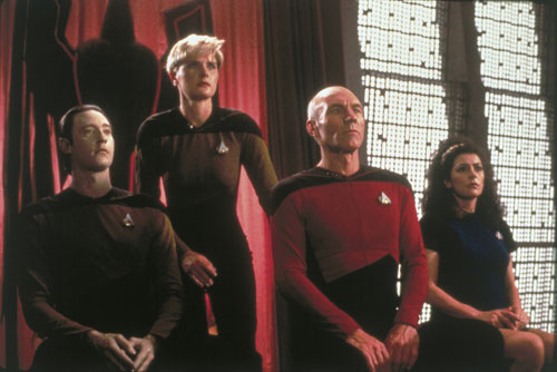 dem blinden Chefingenieur Jordi LaForge, der Schiffsärztin Dr. Beverly Crusher und die Halb-Betazoidin