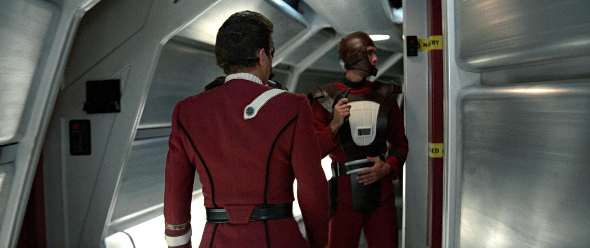 Durch die weniger künstlich erscheinende Beleuchtung der folgenden Staffeln kommen auch die Oberflächen der Sets ganz anders zur Geltung. Konsolen und Bedienoberflächen erscheinen deshalb irgendwie viel realistischer und greifbarer, als die auf Perfektion getrimmten Computer der späteren Staffeln, die keinen Makel erkennen lassen.